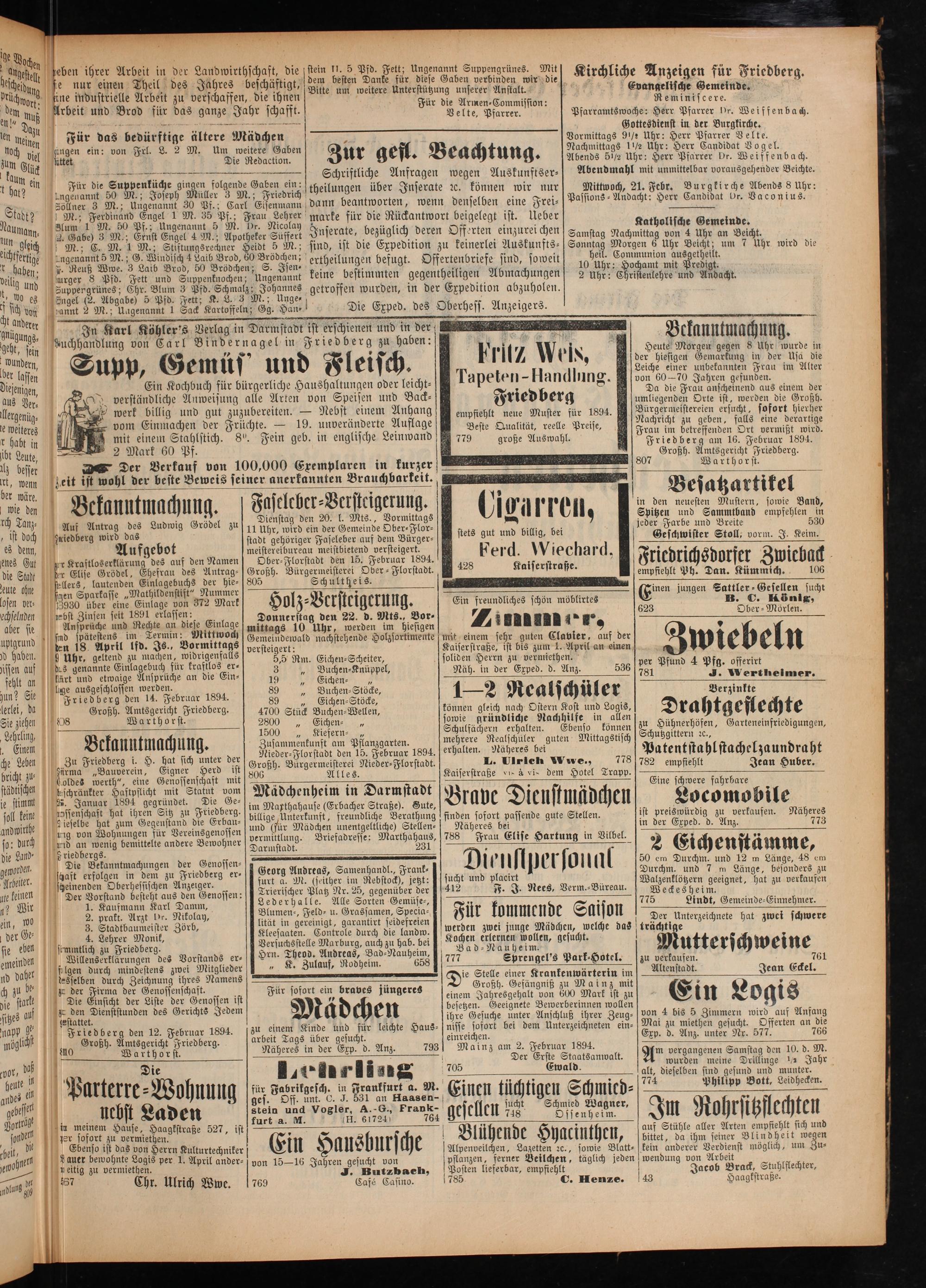 b, ben ben cee eben ih prü dung ihrer 2 ech 18 ee 5 00 wo 0 nur e eit e rk. An ine it in der m 1 e ind n Thei der en muß Arbei ustri heil d Landwi 1 9 J irbeie elle Arbei des Je wirths len m zu 4 und 3 zu e ea die stei woch unn Für d 2 für das erschaffen eech 18 0 5 Pf zum viel 1. 8 f as bedü N Maze Ja 1 ihnen Bitt besten 115 Fett; Uu 1 W 94 Akere 25 schafft a lere für diese Gab S b 0 ein 0 2 tere N r 21 1 921 Gabe uppengrü at? 0 3 M. täd— ützun W n ünes Fur di 13 Um chen 85 9 unf. Stad agen Suppenkü 8 9 Gab 1 0 Alt die Kirchli M Söllner 3. tüche gin Nebnelton.. f irchliche uma M.; N.; 10 7 Jose gen K 1 n. E, Pfa nmissio 5 An 8 fun 104 alum e er Gab ur ge ret, Evang zeigen fü eichffr A 0% 8 8. a en ein Schriftli fl. B Pfar gelische G ür Fri 0 dal N 1 70 8. 9155 eee 15 e 1 Anfr eachtu n Fe e. iedberg haben; ngenan„M. 1 n int 5 M. B. mann d n üb 1 n Vormi Gotte err ere. 3* eig u A e e A e dann b über J n 9 Ae 2 0 und u euß W. G. Wi Stiftun N. A P eantw nsera egen Aus 3 93 9% ienst in er br. Wei sch 8 e 520 0 ga be d f 9 5 für 9 99 0 1 5 i in 11 Herr f 5 12 grünes; t„50 rod, 8 M.,; fi rat ü e wi ö b g 90 Per f i e anden, Ingel 9 nes: Ch e„60 Brödchen f e, bezi antw nselb ir n endm Herr Pfa W ande annt 2. Abgab r. Blur Suppenk ödchen; ödchen; ind, ist di züglich ort bei en eir Ur a ahl mi r Pfar andidat B te. qnü rer M.: U e) 5 Pfd. 3 Pf nochen; 48 3 5 ö die der eigele 5 le Fr: Mitt nit unmi rer b Voge 5 U. + fd. S 1 1 Isen⸗ erthe E 2755 en Off gt i el⸗ Passi woch mittelb r. W̃ ogel. gehe e igenan d. Fett; chmalz; ngena 5 flunge xpedit ffer st. U ssions⸗„ 21 ar vor eif K. Her 9. In K 1 1 Sack K. L. 13 Jo unt keine gen bef ion zu kei ten einz leber„Anda„Febr. 0 orausgeh fenba dungen uchending e ge 0 3 chen S cht: Herr N 199 9 h: S We an. Dan. n wurd gegenthei riefe si luft: gat ö ene g uhr: 955—* 8 7 5* U lejeni en arl Binde in Dar 7 Di en, in d eiligen ind, so 6 Sonnt 9 Nachmi holisch aconi hr: 8 1 i ie er f A wei ag M itta e G ius. 15 der 4 40 Gem r nagel n 25 erschie Exped. des e 19 85. 6 05. tgenüg⸗ Ei s ri nen 6 erh zuhol 20 ff 9 mion eicht; 210 enüg⸗ n e d und 0 ole Uhr: 0 aus 1755 12 e weilen verständli Kochbuch 1 und berg zur he der E ss. Anzeige 1 Cheiteuleher 00 im 7 khr wi 0 habt 0 1 werk 1 0500 e bürgerli Fle* haben: 1 8 rs. chte und A wird die 10 1 0 1 5 2 8. N . 1 isch. 8 5 1 besser 3 4 5 105 der e von N. 1 Frit7 a 7 9 5 . e 8 i N wäre eit ist w r V a e ur einem ack⸗ 61 8 sil wie den ohl d erkau in geb. i weränd Ang 1-H 1 t tm en er best f vo in nderte ang 9 ane 15 der hi Mor U t Bekanntm l flu an wh dend eng ung- e e 45 bd Auf I iner rem aud neue M e die e 5 0 es den dwiedb 0 un anerk plaren i 77 te Qualitä uster fü N 0 Ja kannten 5 der Usa die 1. er ag des annt n in 1 9 alität für 189 7 umli ie Fr hren gef Frau i sa di enes G I g wird da Ludwi f. F en B ku gro ee 94. liegend rau a gefund u im A le f 8 ig Grö asel rau rzer ße A e Prei ür en O uschein en. liter die 8 ut. A rödel che chba 9 uswah ise, 93 9 germ 5. 90105 tab r Kraf uf zu Die r⸗V 55 rkeit hl. 9 kachri eisterei ist, wer us ei ö l aftloserklä geb ienst ex 5 icht ien erd einen zeute ohne er Elise Serkläru ot 11 U tag de tei 22 Frau i zu geb ersucht 5 8 902 'osen e ellers Grödel 19 des stad hr, wird 1 20 gerun 8 N F im betreff en, f 1 sofo roßh ber- 1 ale auf d dt 8988 ein d Mts. 8 Fried reffend alls ei rt hier. h, e ee 3 g Ci— bent A 1 n ge asse„Math 0 ag⸗ er⸗7 U eleber 5 er-— Amt 25 5 15 aber se 1. Zunsen felt wa 9 5 hie. Großh. Fe 1 IGarr 5 0 5715 1882 en ff e eb! a, Lürren Besatzart 8 hab, fe 1 ett e art 1 dur 180 and bil 2 10 a e f e i 4. 7 illig, bei den 7 dissen auf 90 Uhr, April 1 iese Einla D Holz⸗V 1 8. Florstadt. 42 F erd 55 Spitzen neuesten 9 artike F 99 0 e 70 e ersteigcrun ee e e un? Ei und inla chen, widri ittags G ags 1 en 1 g 00 f 5 Sie lage eg gebu„ widri g emei 0 u 22 0 rstra 1 eschwi Brei empf Band lerlei, d Ilge ausge aige A ch für k genfalls ver indew hr d. M 7 f sse. ö 5 ster ite pfehle d, klei, da Fri schloss nsprü raftlo 3 versteige ald nachf werde Nts., B Ein fr Fr f Stoll n in Sie 10 iedbe en wer che an di 8 er⸗ rt: chstehe n im Bor⸗ freundli iedr vor 53 ziehen. G rg den rden. die Ei 5,5 R hende Hol hiesi 7 iches schö em ichsd m. J. Kei 0 Lehrlin 85 roßh 14. J. 3 m. Ei olzsortim te 7. schön mö 5 pfiehlt! orf Leim ling. Amtsgeri ebruar 1 1 ichen⸗Schei ente mi 11 oblirte a Ph. D Cr 3 3 „ Einem Wa gericht Fri 894 0„ Vuche cheiter mit ei 21 8 Eine i an. Kü wi 5 8 89„ Ei n⸗Knüß 5 Kais nem I* n ju Küm 1 all he 920 B f rthorst riedberg ichen⸗ üppel aiserstr sehr 4 1 ngen 5 mich 5 . en C l 5. 89 75 Bu 7 solid raße 72 guten C 623 Sattl 2 1 bricht Zu Fri nntm 4700 Stüc uchen⸗S 75 en H 5 ist bis Clavi 0 er ⸗G 06 1 Fr St 5 töck Nä herrn zun 1 B. esell den een achung. 10 1 1— 0 6,. e ie sti Loldes werth“ en, E„ Sichen⸗ en, 1 ed. d. An en 2 Morlen- 17 nene. 570 Gagel unter der 1 0 8 0 Kiefern⸗ 1 0 2 N. Anz. wi len. keine. Januar Haftpflicht enossen Herd ist G ieder⸗Fl Aut e önnen glei cal 8 536 per Pf E andwirthe zwossenschaf 1894 mit enschaft 120 8 roßh. Bu orstadt d Pflan sowie eich nach chül 781 und 4 so: dutch 1 1 15 1 8 8 0 50. 9 55 geleert 1 a Kost er 2 70 offerirt 5 15 vo zum G i 5 i 2 rei Ni uar e rn er kachhi u.„ „ e e dennen. ice a e er ordes. rte ber g bemi ür Verei e Erbau⸗ billi a mi g Näh r gu enso kö en r ukt er rhei Di 98. nittelt ereins au- bill tha in. L eres bei iten Mi kön U 5 2 ia e dende, See e e ee We bes tgeflecht len scheinend gen in ungen ner vermi ädchen freundli raße B vis A vi 0 gitte en, G 2 Wi d ittl che ndl). 1 e 5 rn 2 4 1 R 1 Der 8 Dormsigdk e 5 rabe Die 8 Natel 15 Vatentfaßlf e „0 1 1. Kauf besteh An erg e 5 a 2 tell nde fi 2 ee em a en, e 1 ht zeiger r- a en⸗ n pfieh der Ge⸗ 5 2 U 8 6— 5 5 Andre rthahaus, ee passend l tmädch Eine hlt chelzaundr sie eben 1 Stadt Irzt Dr damm ossen: Tri a. M as, Sa 231 8 a 1