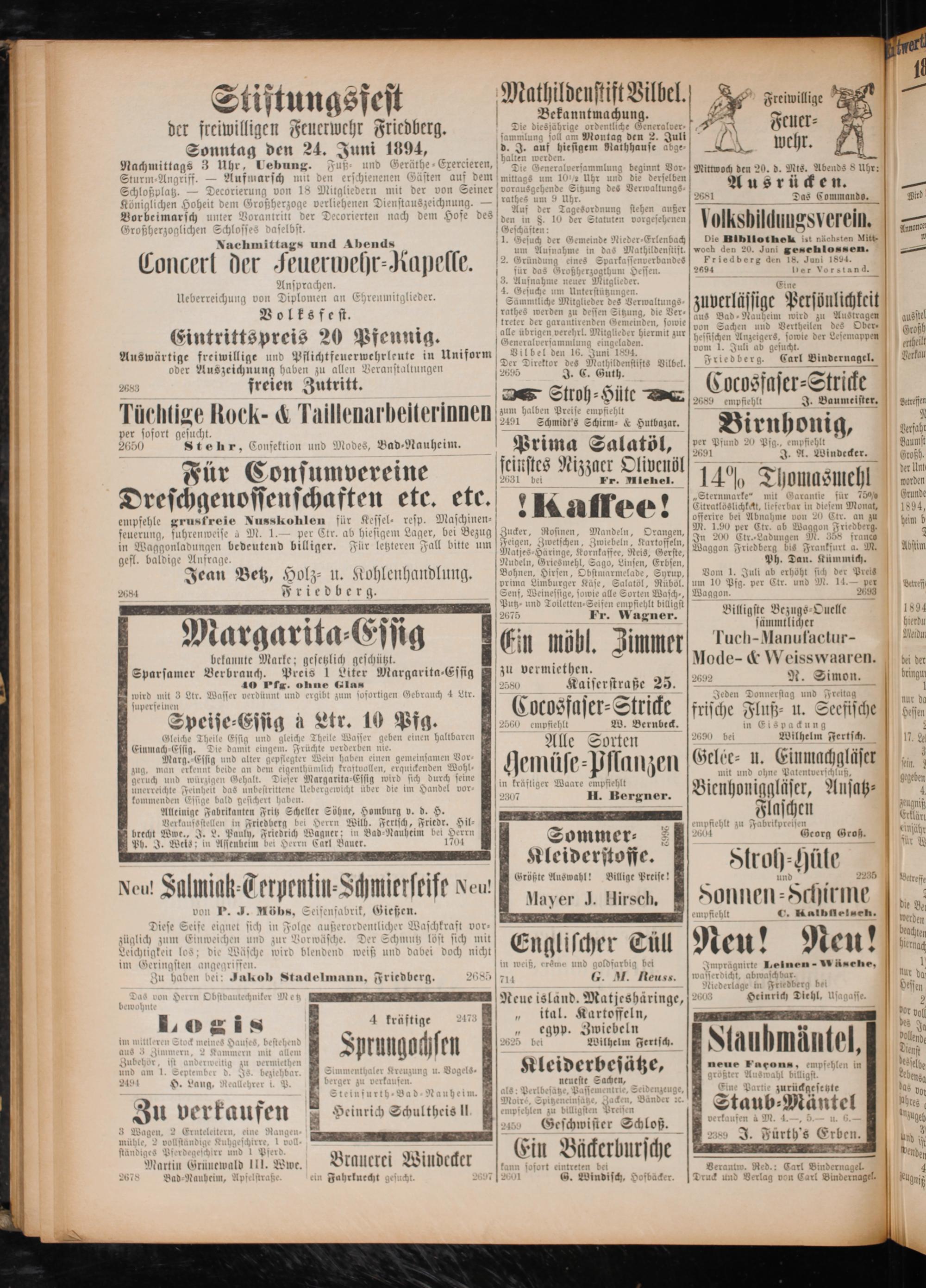 von Sachen und Vertheilen des hessischen Anzeigers, sowie der Lesemappen vom 1. Juli ab gesucht.