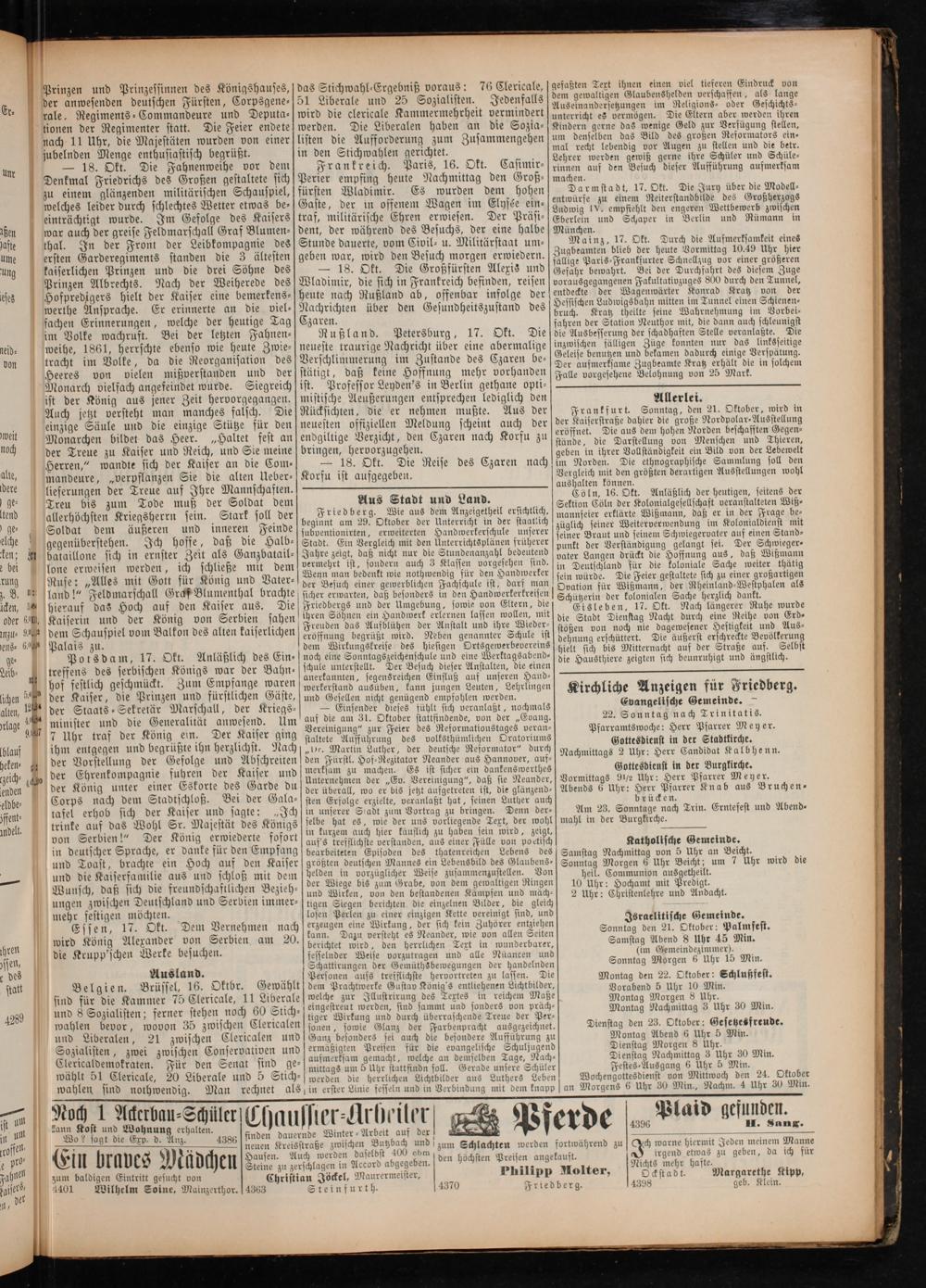 Kirchliche Anzeigen für Friedberg. Evangelische Gemeinde.
