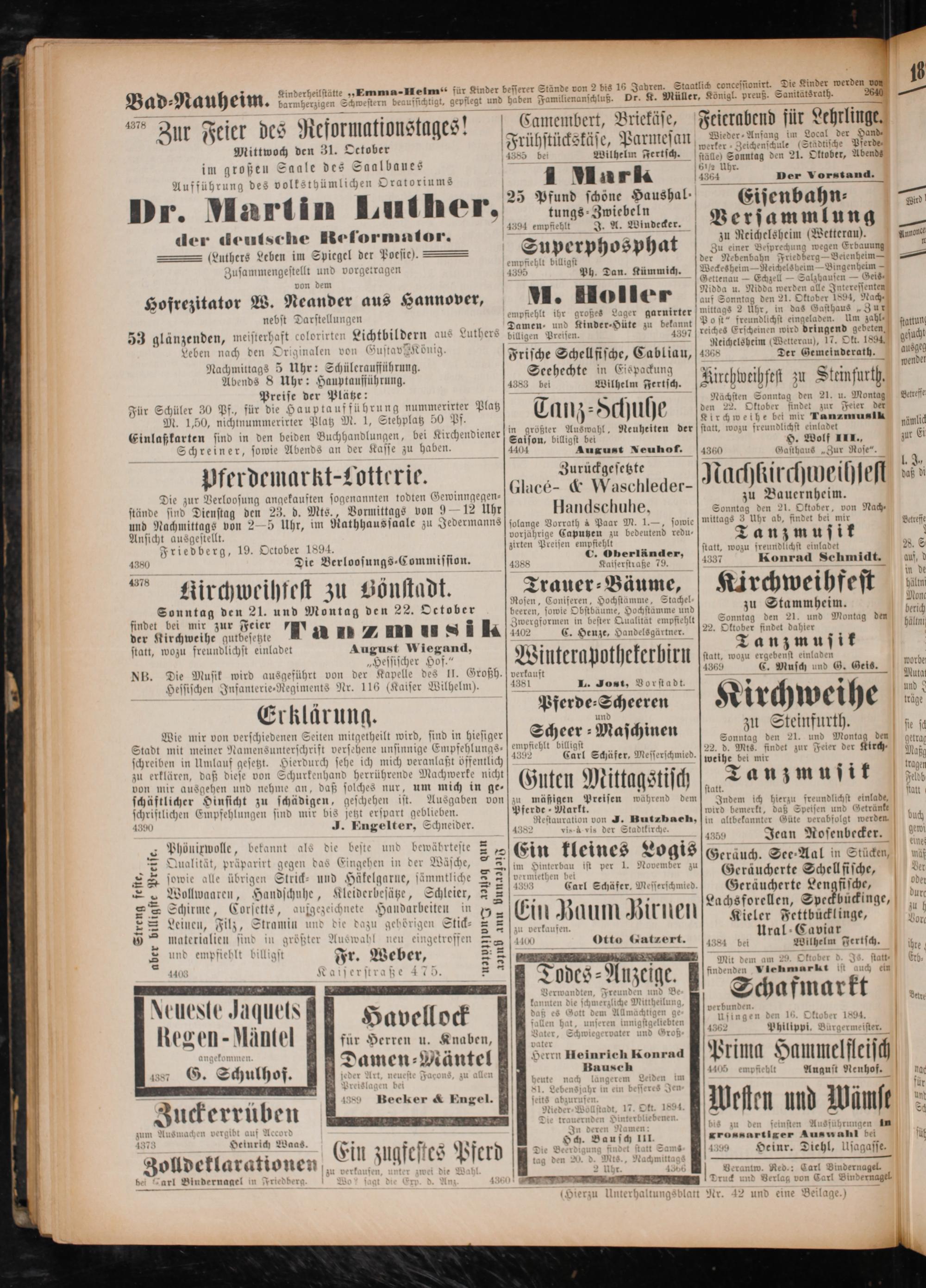5 1394 empfiehlt J. A. Windecker. der deutsche Reformator. Reichelsheim(Wetterau). 5 5 t zu Retchels heim(Wetterau (Luthers Leben im Spiegel der Poesie). Superphospha Zu einer Besprechung wegen Erbauung