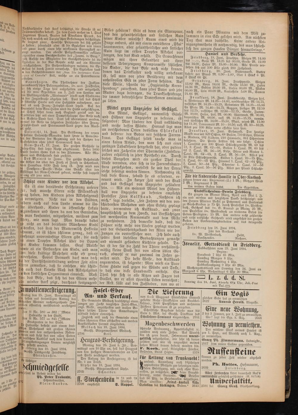 nach ein Paar Minuten mit dem sammen in eine Ecke gekehrt wird. Am nächsten Tag thut man dasselbe. Keine andere Rei— nigungsmethode ist nothwendig, bis man schließ— lich den ganzen Haufen Dünger hinausbringt.“ Handel und Verkehr. Friedberg, 19. Juni. Fruchtpr. Weizen M. 14.00