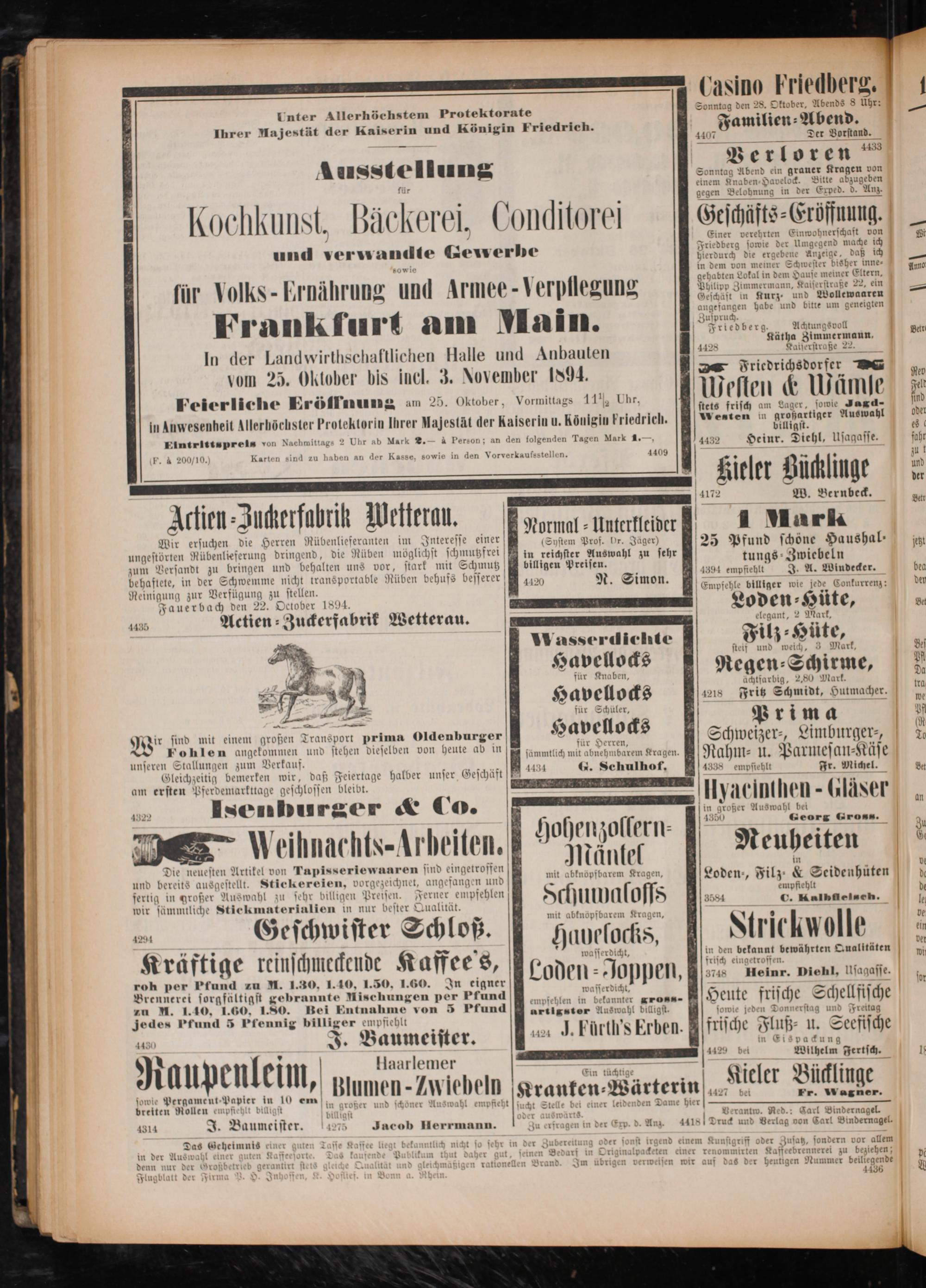empfehlen in bekannter gross artigster Auswahl billigst. sowie jeden Donnerstag und Freitag