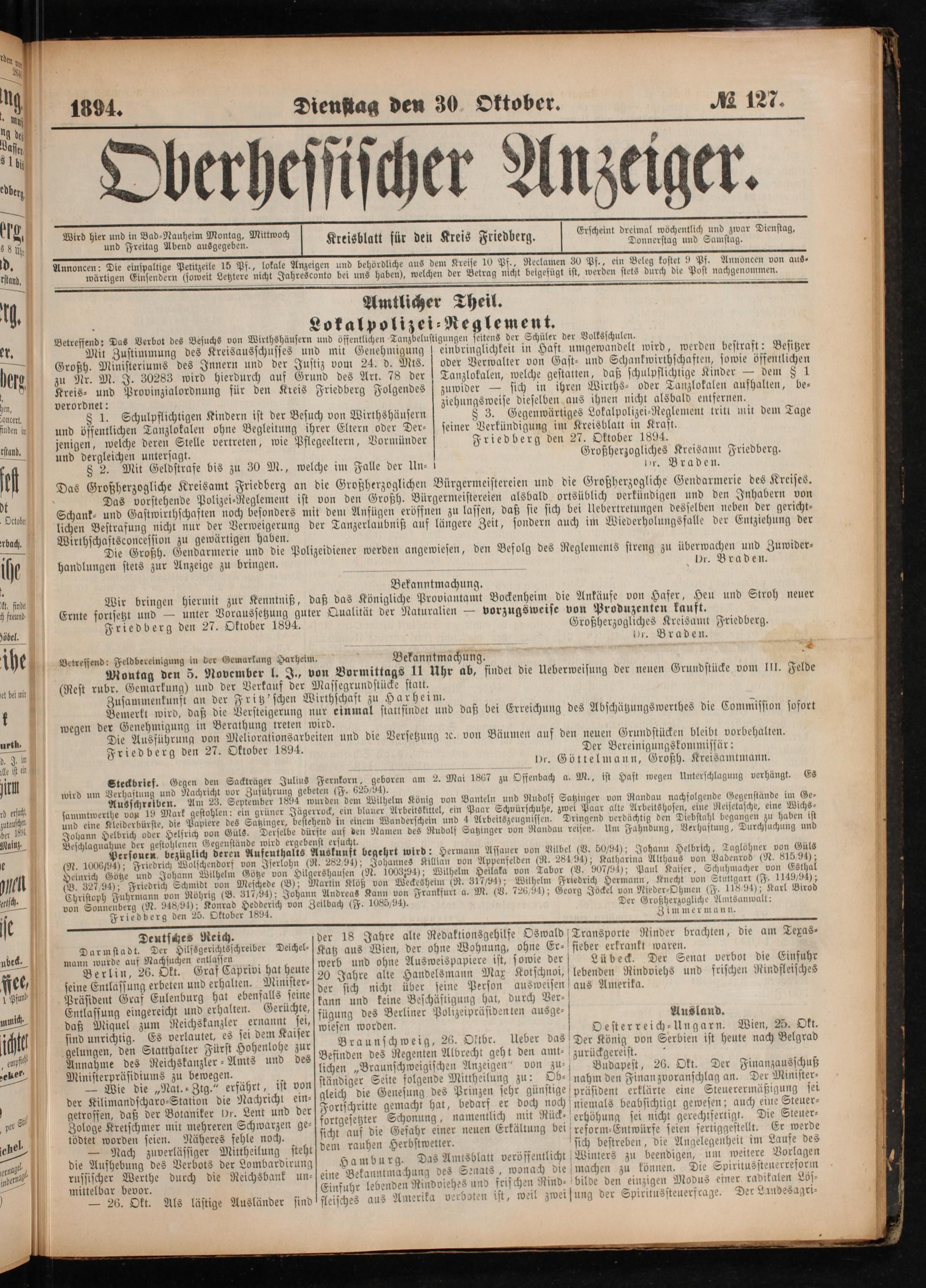 Friedberg den 27. Oktober 1894.