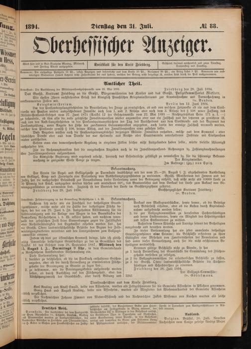 Friedberg den 28. Juli 1894. Großherzogliches Kreisamt Friedberg: