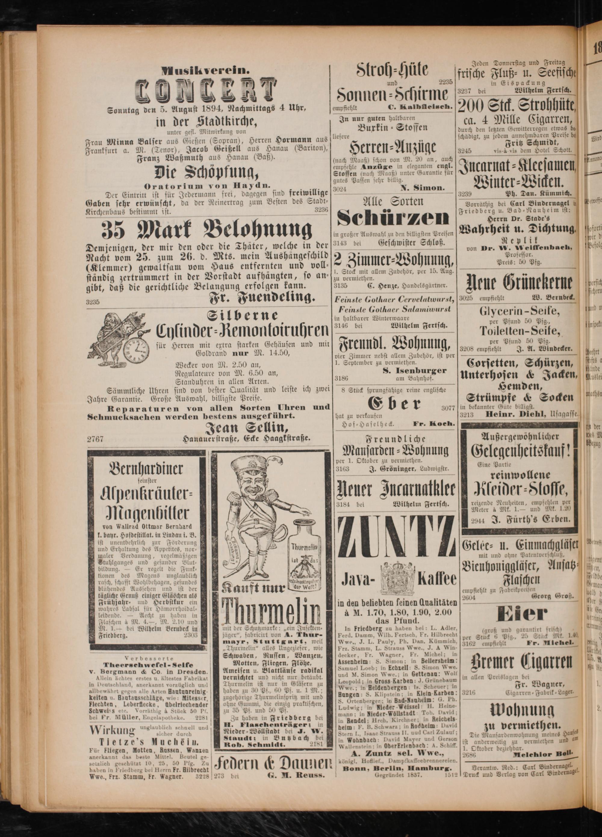 In Friedberg zu haben bei: L. Adler, Ferd. Damm, Wilh. Fertsch, Fr. Hilbrecht Wwe., J. L. Pauly, Pb. Dan. Kümmich, Frz. Stamm, L. Strauss Wwe., J. A Win- decker, Fr. Wagner, Fr. Michel; in Assenheim: S. Stmon; in Bellersheim: Samuel Loeb; in Echzell: S. Simon Wwe. und M. Simon Wwe; in Gettenau: Wollt Leopold; in Gross Karben: J. Grünbaum Wwe; in Heldendergen: le. Schauer; in Hungen: S. Klipstein; in Klein Karben: S. Ortenberger; in Bad-Nauheim: G. Pb. in Nleder-Weissel: HI. Heine