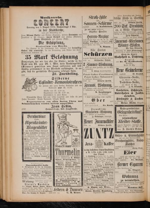 Stern I., leaae Strauss II. uud Carl Zulauf; in Wohndbach: David Mayer und Gerson Wallenstein; in Oder Erlenbach: X. Schiff. A. Zuntz sel. Mue., Königl. Hoflief., Dampfkaffeebrenneteien. Bonn, Berlin, Hamburg. Gegründet 1837. 1512