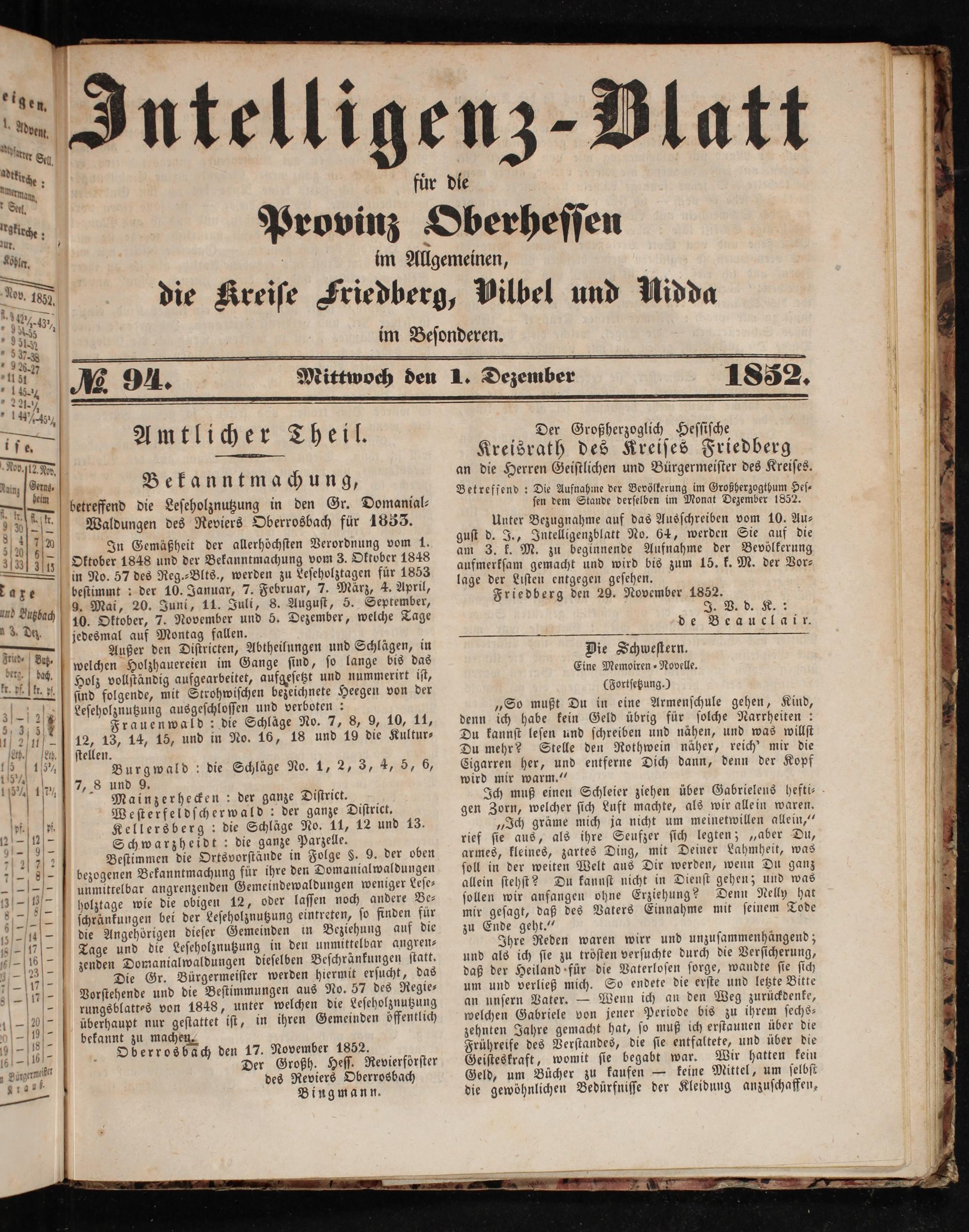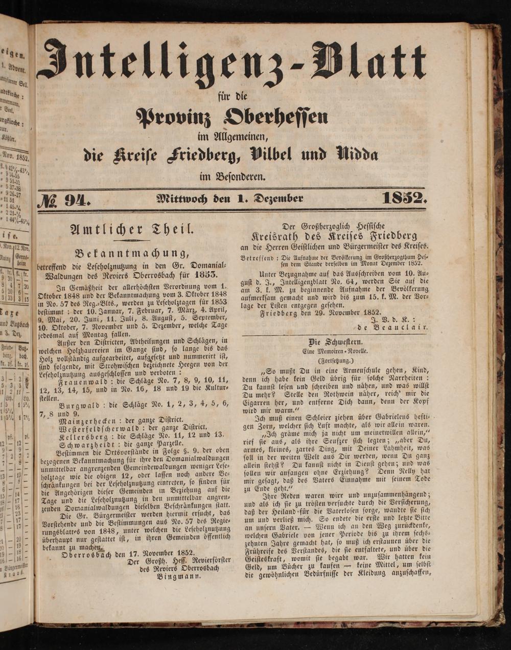 Oberrosbach den 17. November 1852. Der Großh. Heſſ. Revierförſter des Reviers Oberrosbach Bingmann.