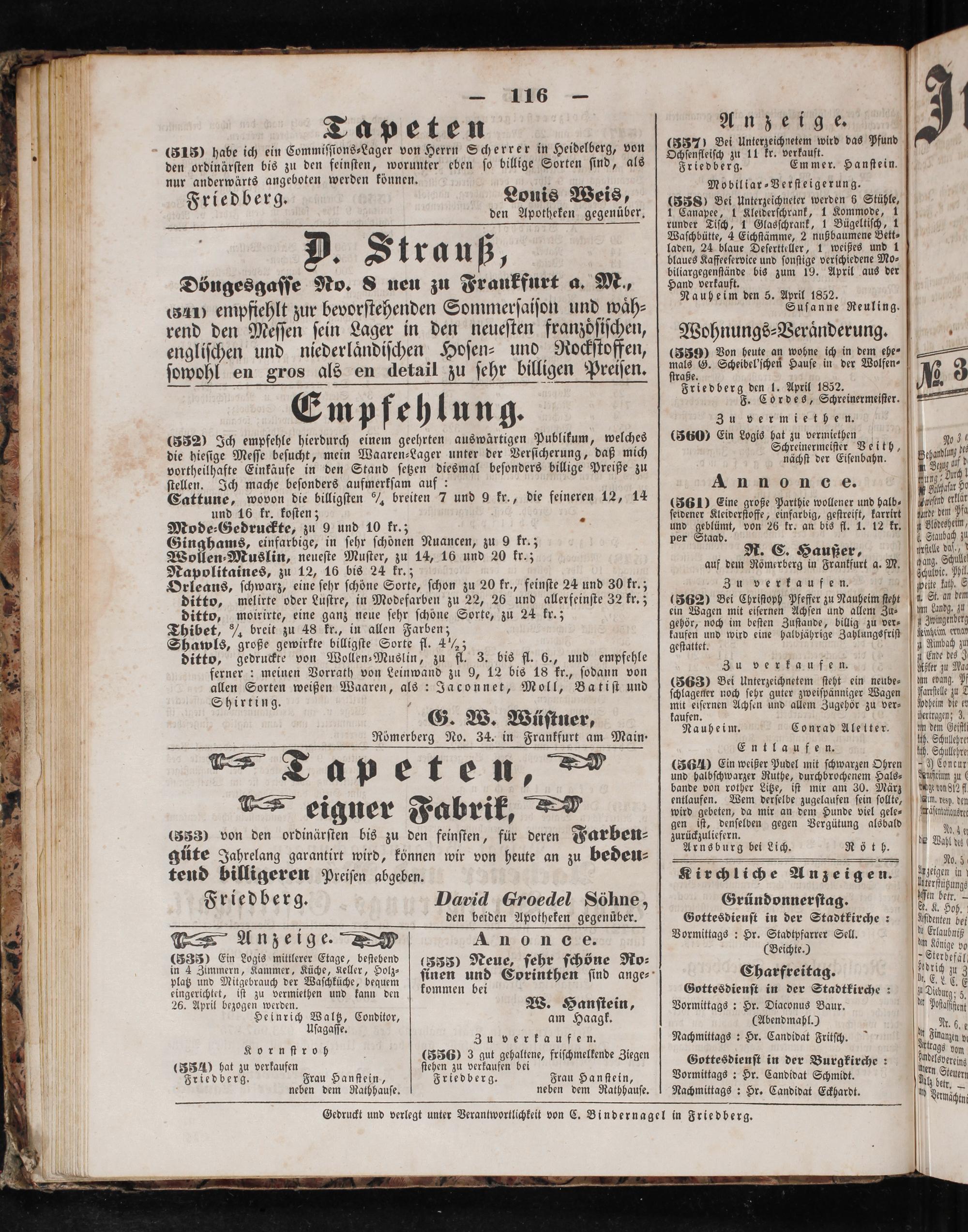 Gedruckt und verlegt unter Verantwortlichkeit von C. Bindernagel in Friedberg.