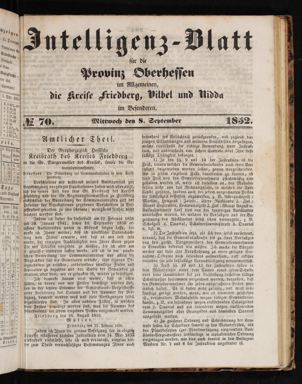 n Verſchiedene mir während meines Amtsantritts zur Taxe Genehmigung vorgelegte Liquidationen haben mich überzeugt, und Bubb daß die ſeiner Zeit von dem Gr. Kreisrath des Kreiſes r— ach Friedberg und der Gr. Regierungscommiſſion zu Friedberg September.