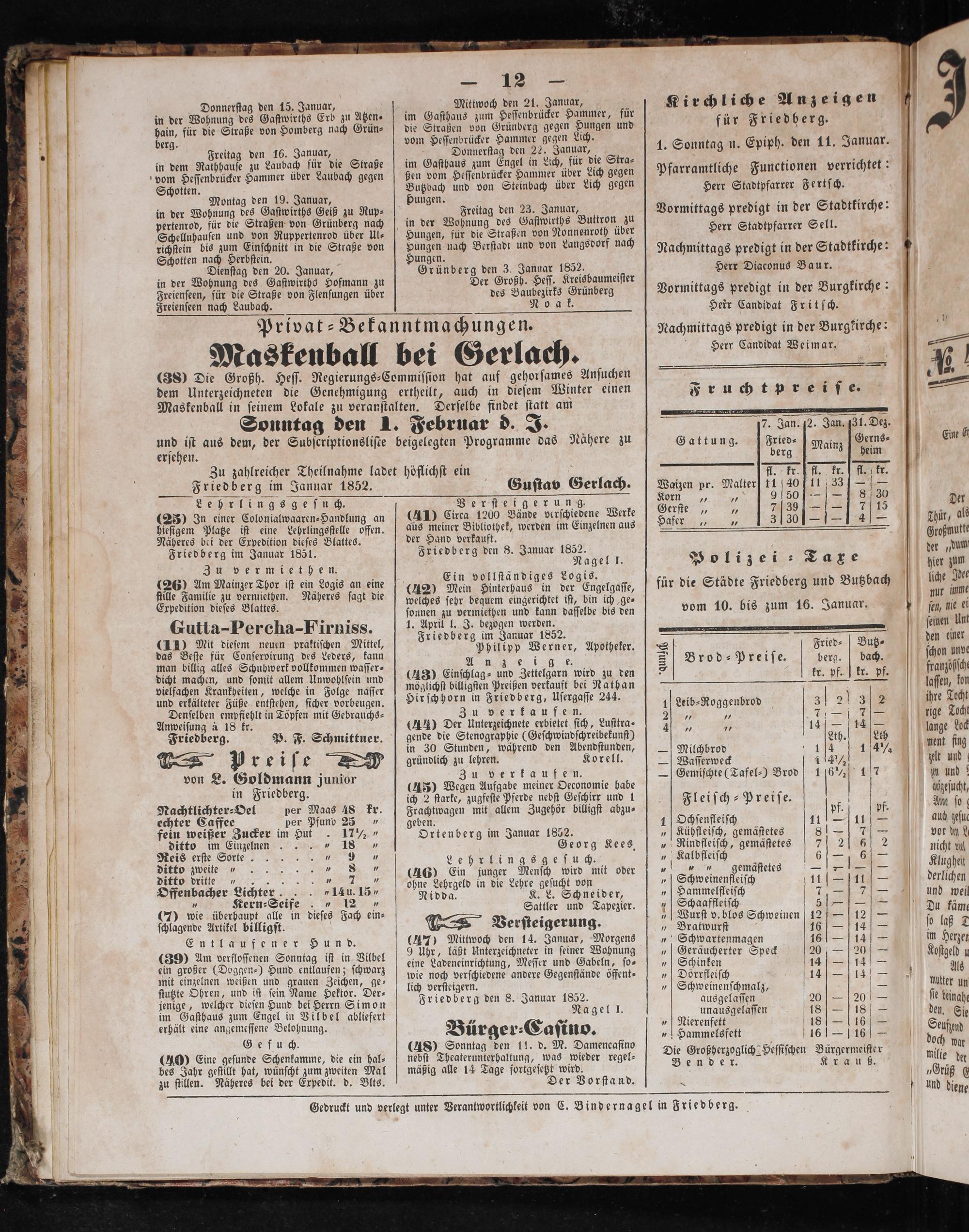 Gedruckt und verlegt unter Verantwortlichkeit von C. Bindernagel in Friedberg.