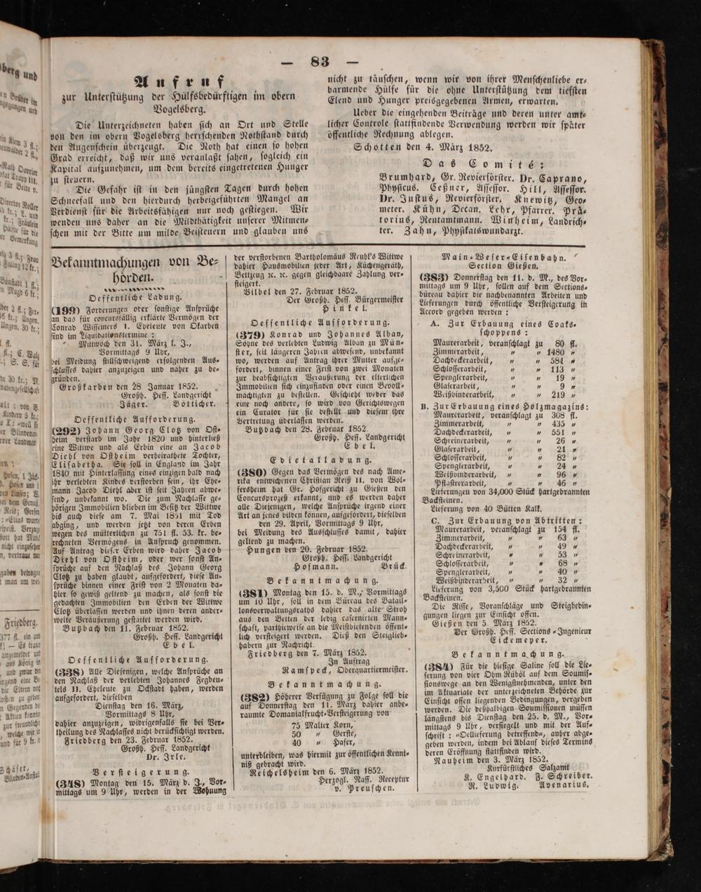 Die Unterzeichneten haben ſich an Ort und Stelle von den im obern Vogelsberg herrſchenden Nothſtand durch Die Noth hat einen ſo hohen Grad erreicht, daß wir uns veranlaßt ſahen, ſogleich ein