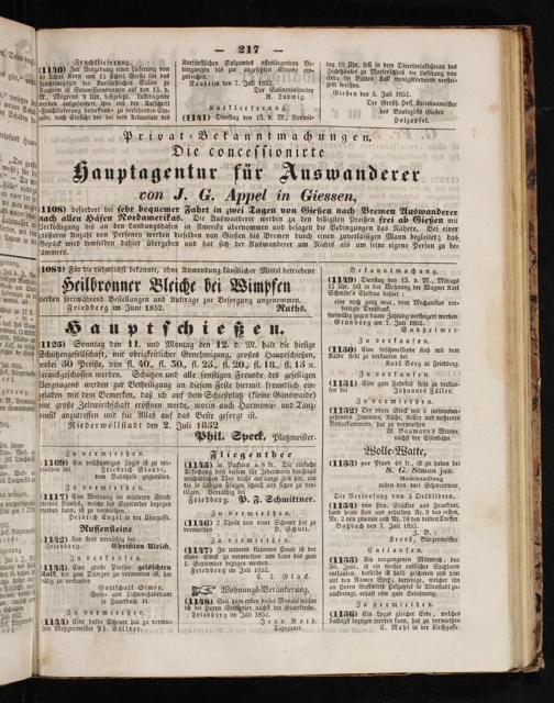 Hauptagentur für Auswanderer von J. G. Appel in Giessen,