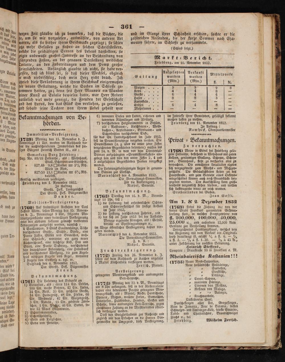 Markt⸗ Bericht. Friedberg, am 10. November 1852.