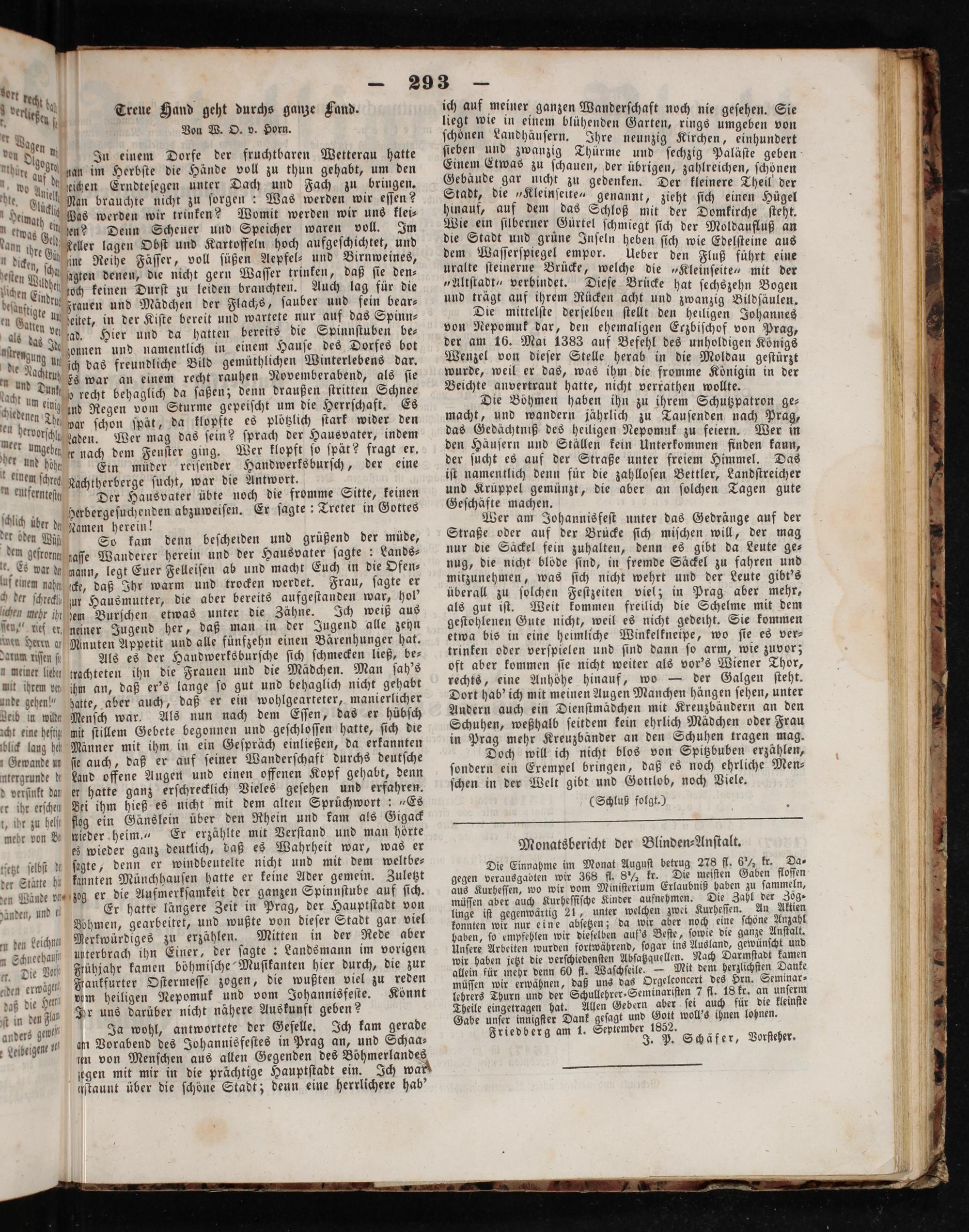 Flankfurter Oſtermeſſe zogen, die wußten viel zu reden mm heiligen Nepomuk und vom Johannisfeſte. Könnt Ir uns darüber nicht nähere Auskunft geben?