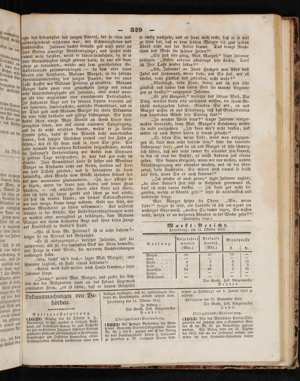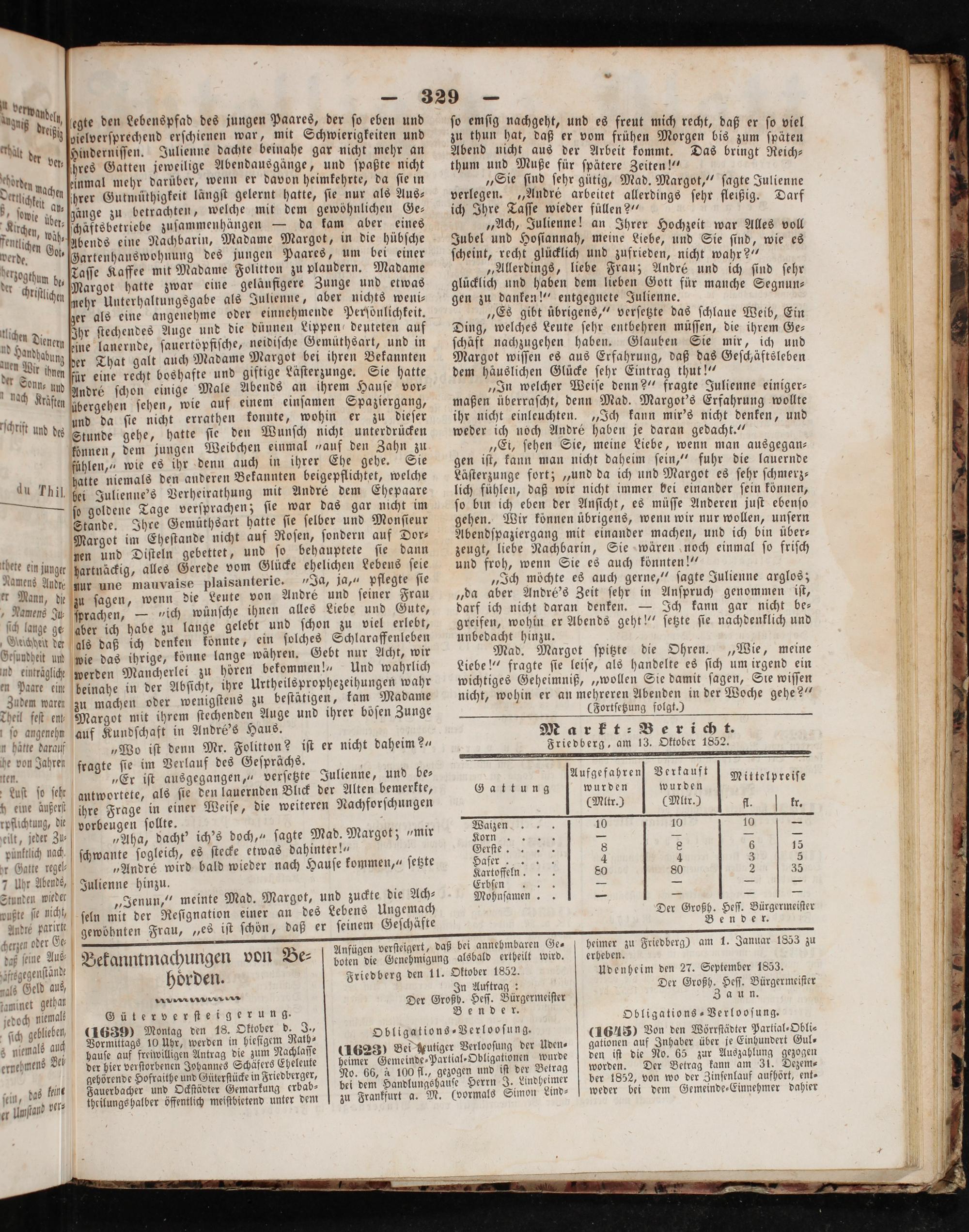 Markt Bericht. Friedberg, am 13. Oktober 1852.