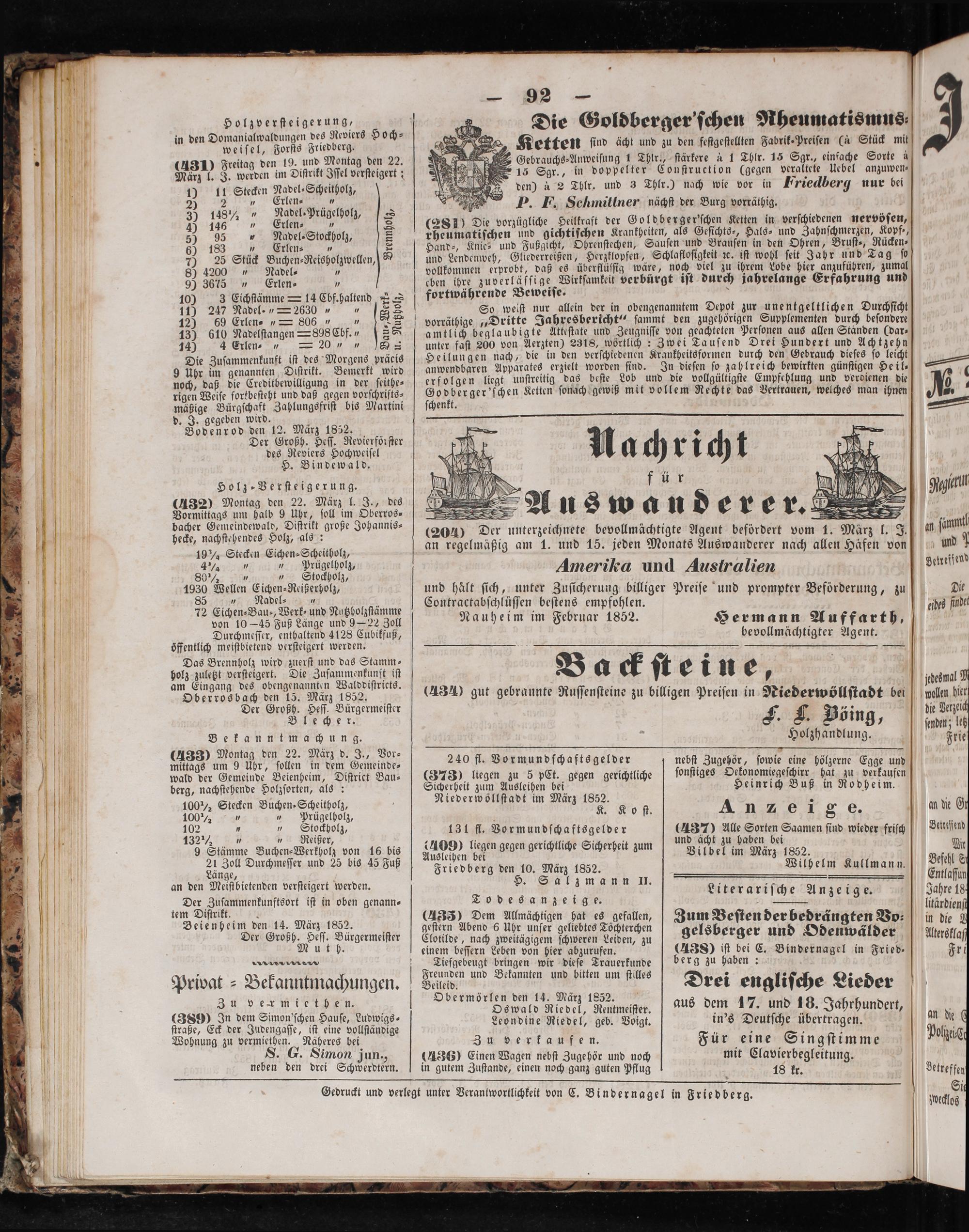 Gedruckt und verlegt unter Verantwortlichkeit von C. Bindernagel in Friedberg.