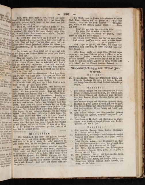 18. Dem hieſigen Bürger und Metzgermeiſter Heinrich Weiblinger eine Tochter, Katharine Wilhelmine, geb. den 1. Juli.