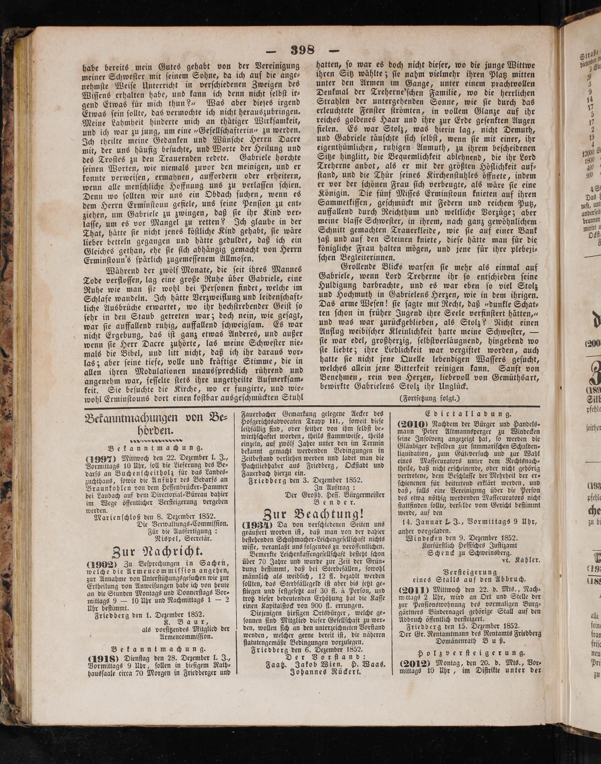 Marienſchloß den 8. Dezember 1852. Die Verwaltungs⸗Commiſſion. Für die Ausfertigung: Nispel, Secretär.