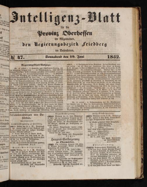 Nr. 29 enthält: 1) Bekanntmachung des Gr. Miniſteriums des Innern vom 13. Mai, die Auswanderung Militärdienſtpflichtiger betr.— 2) Ueberſicht der für das Jahr 1852 genehmigten Umlagen zur Beſtreitung von Communal-Bedürfniſſen in den Gemeinden des Regierungsbezirks Friedberg.
