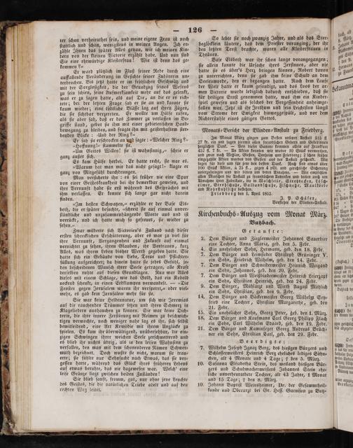 ein Sohn, Johannes, geb. den 20. Febr. Dem Bürger und Weißbindermeiſter Heinrich Leierzapf ein Sohn, Chriſtian Heinrich, geb. den 24. Febr. Dem Bürger, Mühlarzt und Wirth Auguſt Möhlich ein Sohn, Chriſtian, geb. den 9. Febr.