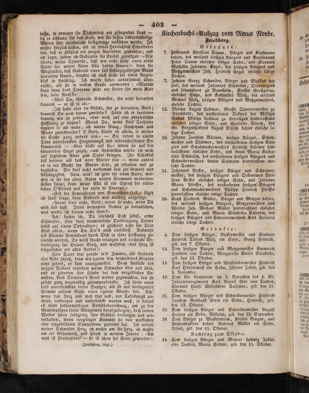Kirchenbuchs⸗Auszug vom Monat Novbr. Friedberg. Getraute: