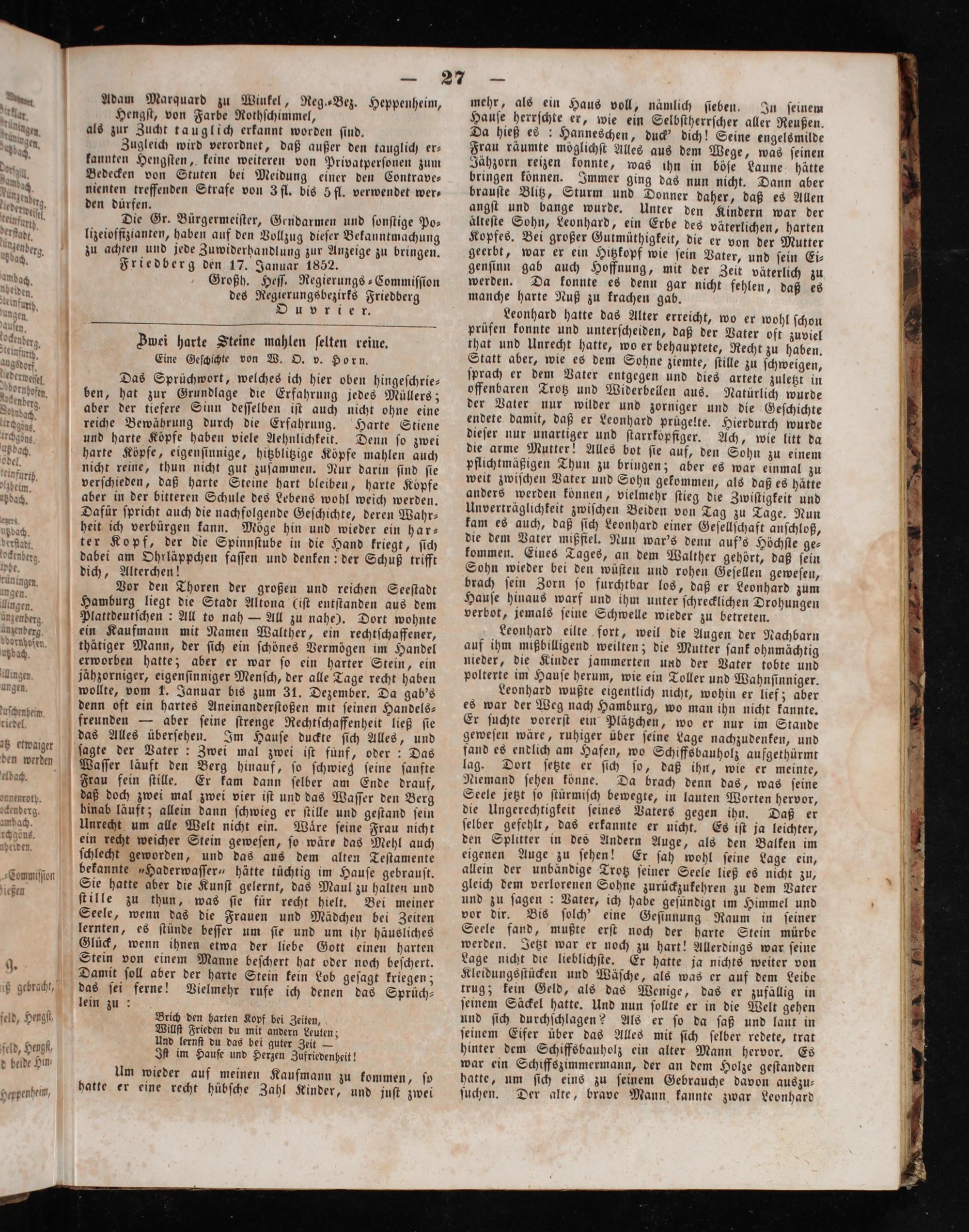 Hamburg liegt die Stadt Altona(iſt entſtanden aus dem inzenberg Plattdeutſchen: All to nah— All zu nahe). Dort wohnte ünzenberg. ein Kaufmann mit Namen Walther, ein rechtſchaffener, deerdoſen. thätiger Mann, der ſich ein ſchönes Vermögen im Handel addach. erworben hatte; aber er war ſo ein harter Stein, ein illingen. jähzorniger, eigenſinniger Menſch, der alle Tage recht haben ungen. wollte, vom 1. Januar bis zum 31. Dezember. Da gab's schehen denn oft ein hartes Aneinanderſtoßen mit ſeinen Handels⸗ bebel. freunden— aber ſeine ſtrenge Rechtſchaffenheit ließ ſie