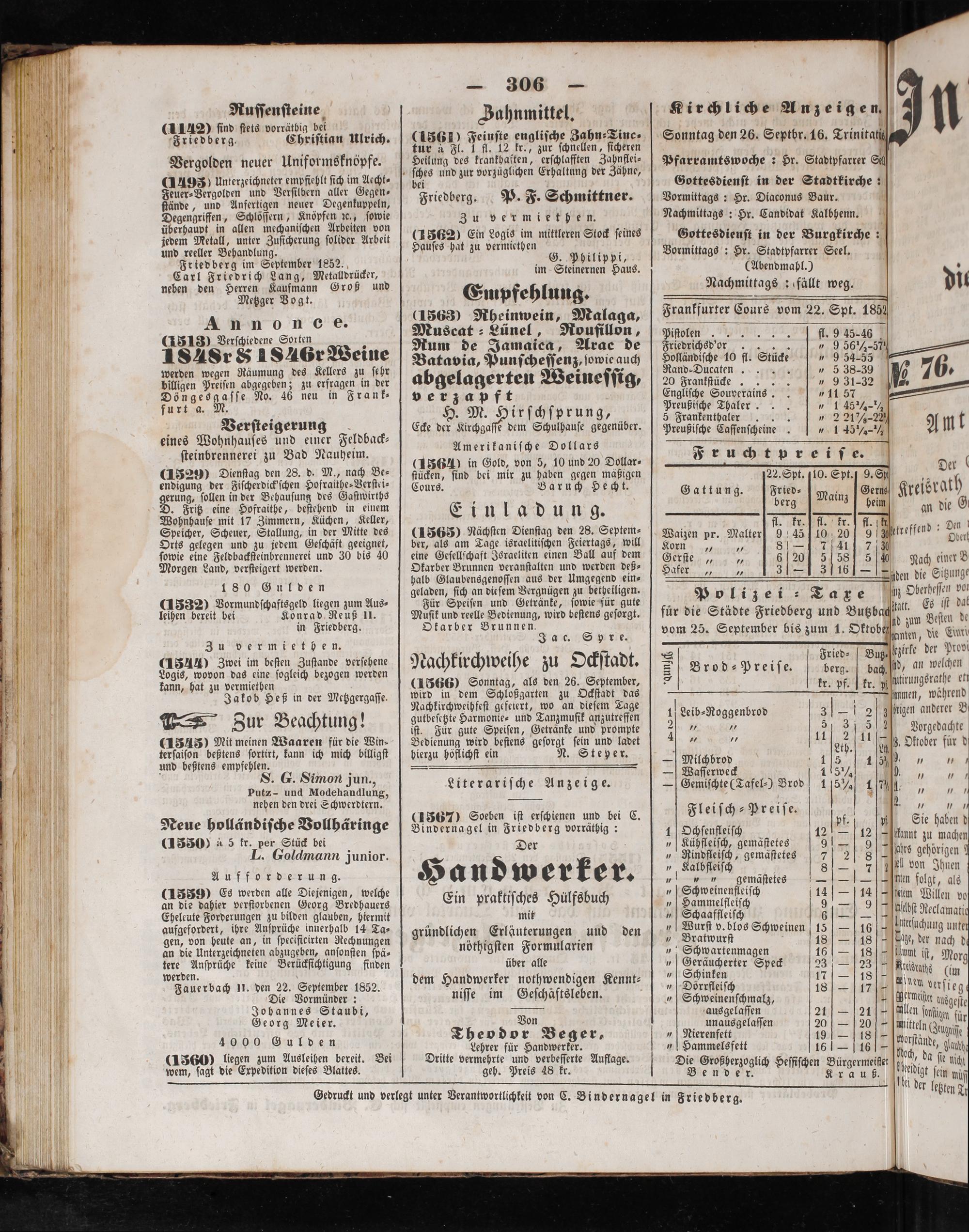Gedruckt und verlegt unter Verantwortlichkeit von C. Bindernagel in Friedberg.