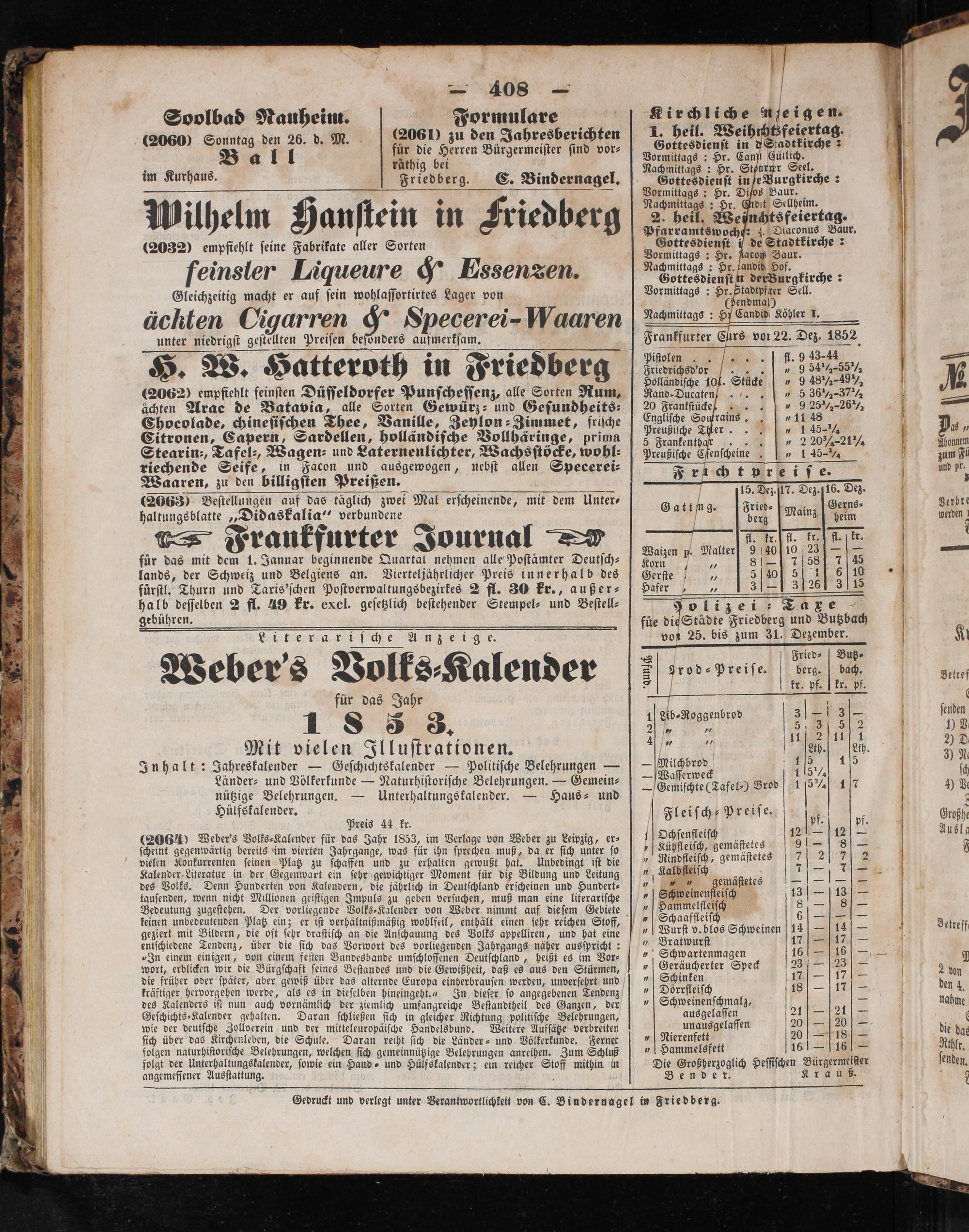 Gedruckt und verlegt unter Verantwortlichkeit von C. Bindernagel in Friedberg.