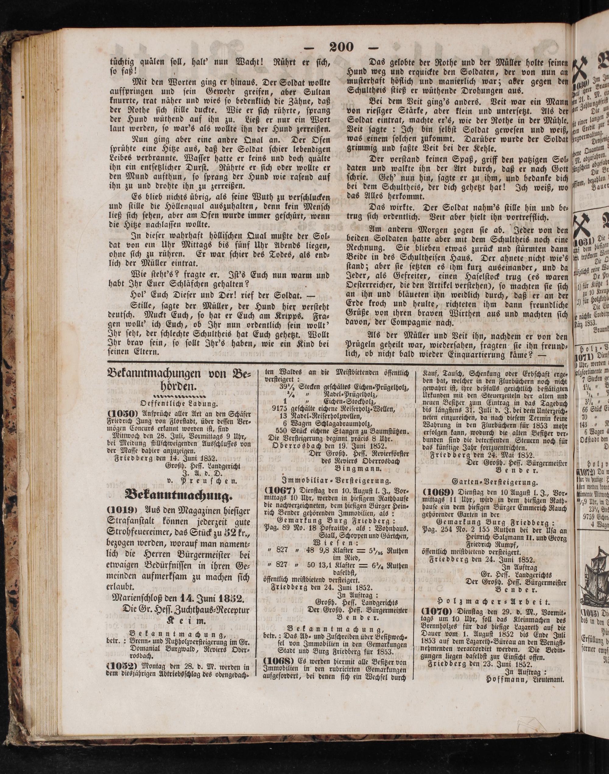 Friedberg den 23. Juni 1852. In Auftrag: Hoffmann, Lieutenant.