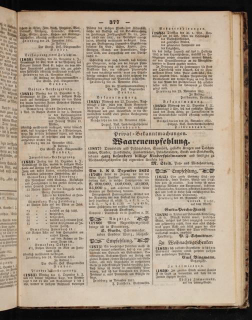 ausgeboten werden ſoll. Friedberg den 24. November 1852. In Auftrag: Der Großh. Heſſ. Bürgermeiſter Bender.