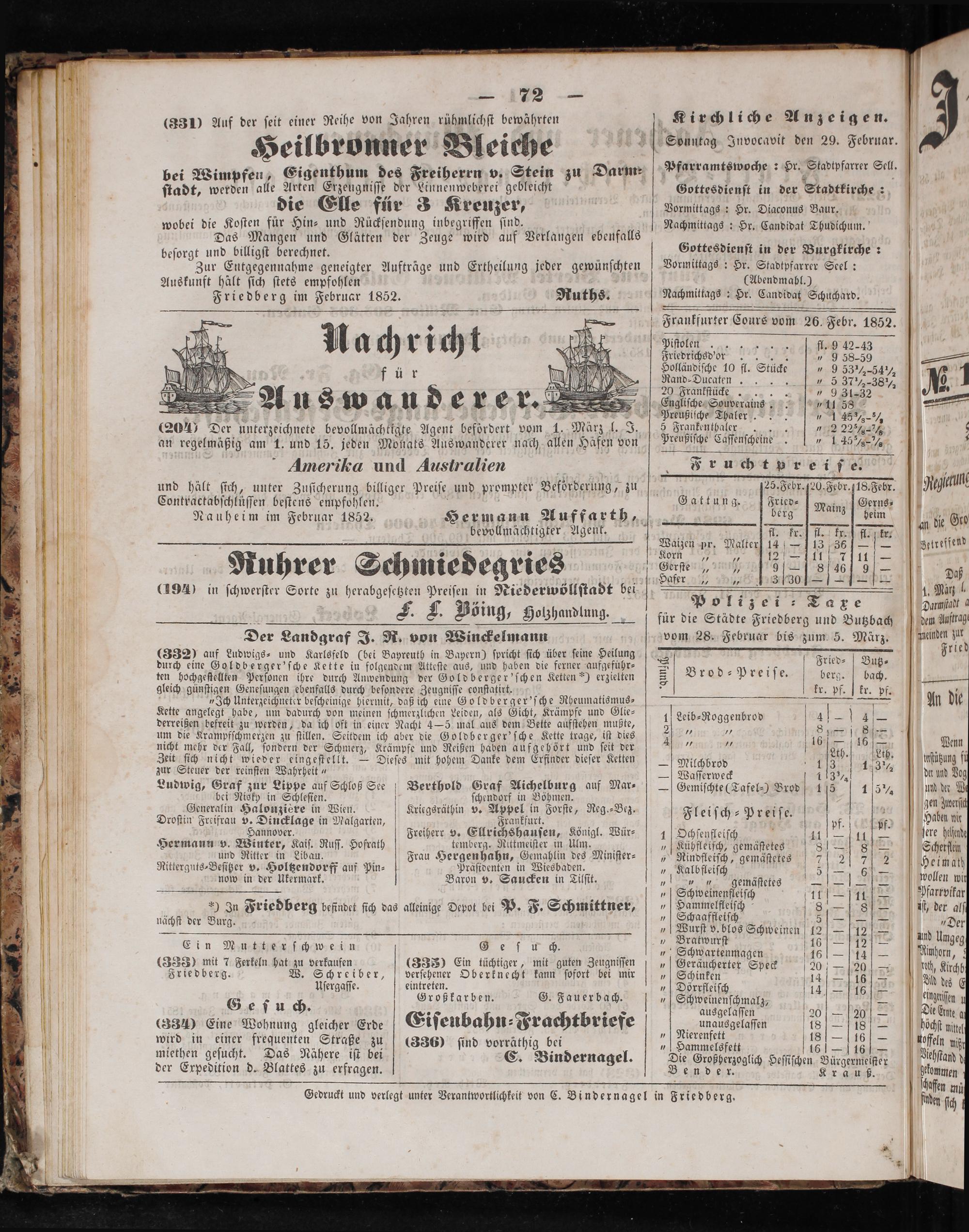 Gedruckt und verlegt unter Verantwortlichkeit von C. Bindernagel in Friedberg.