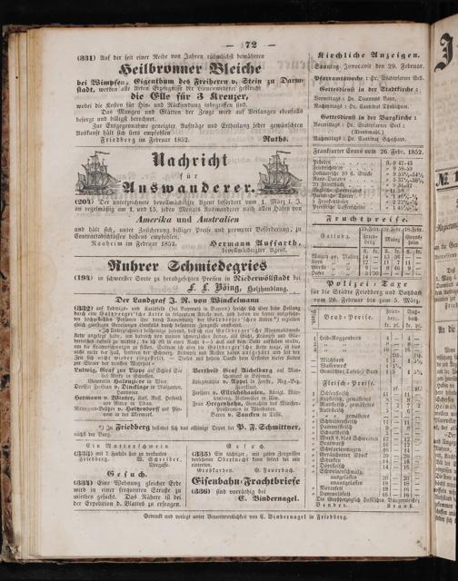 Auskunft hält ſich ſtets empfohlen Friedberg im Februar 1852. Ruths.