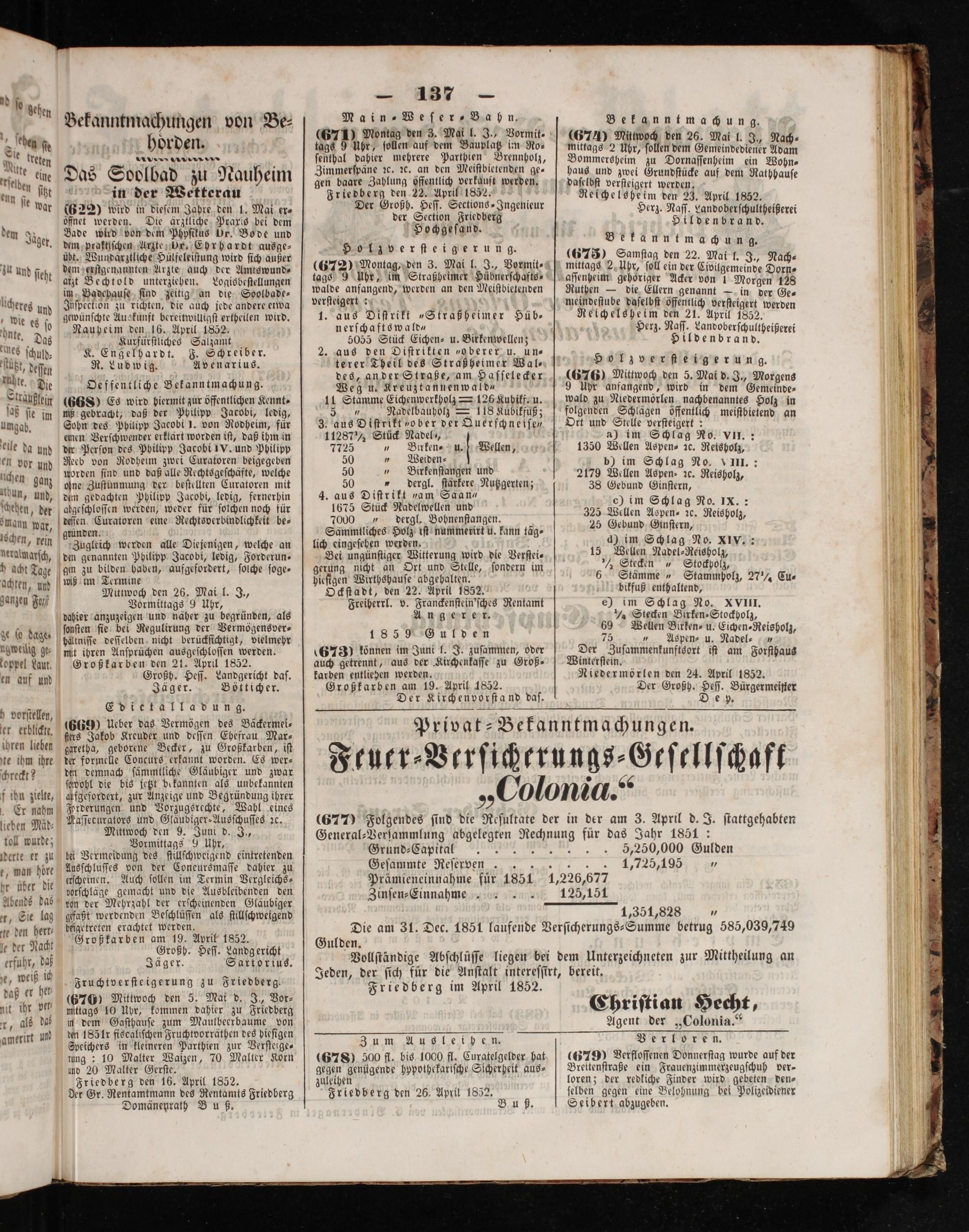 Großkarben den 21. April 1852. Großh. Heſſ. Landgericht daſ. üäger⸗ Bötticher.