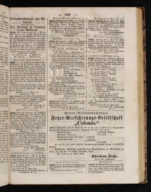(677) Folgendes ſind die Reſultate der in der am 3. April d. J. ſtattgehabten General⸗Verſammlung abgelegten Rechnung für das Jahr 1851: