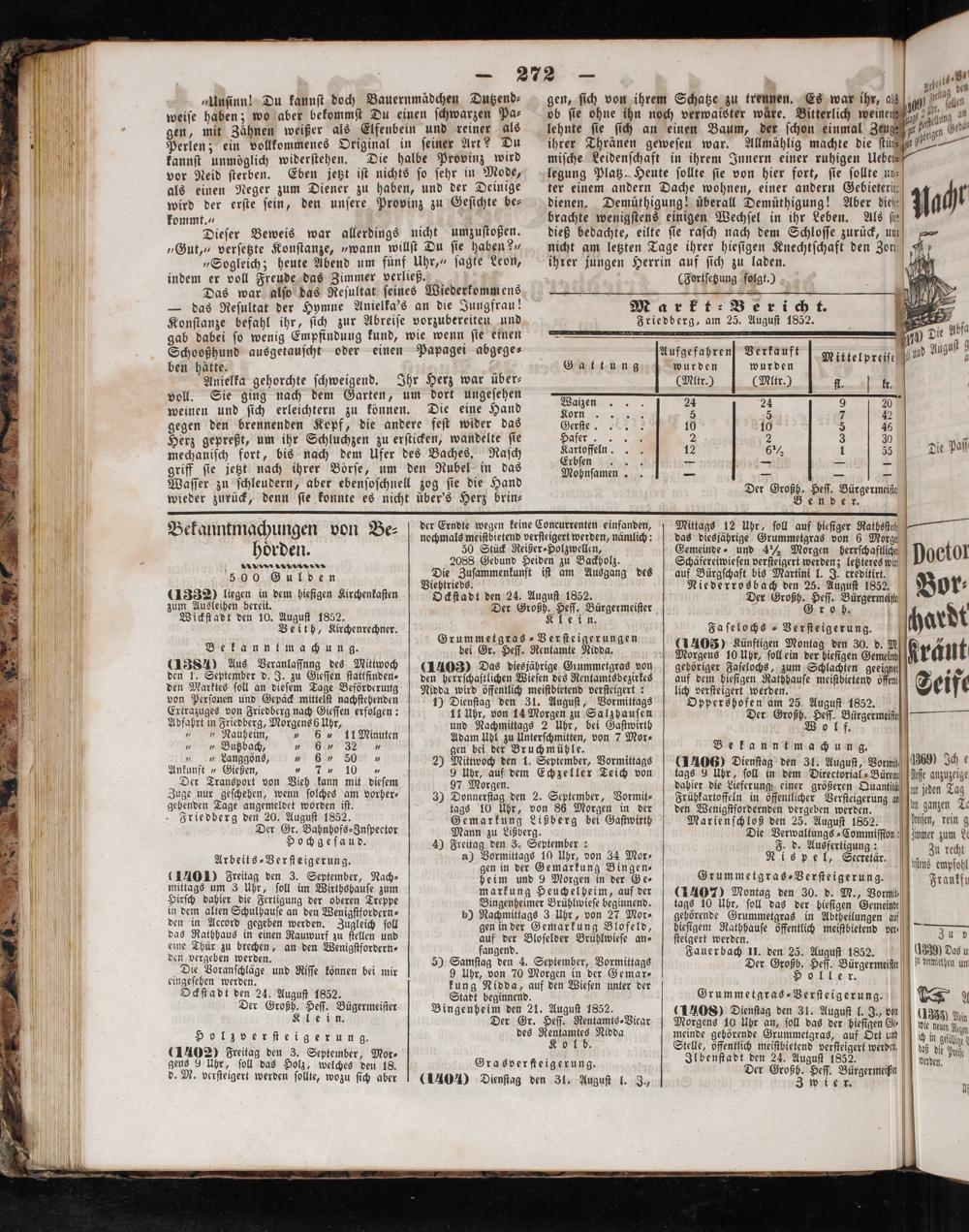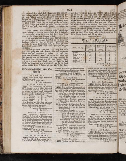 Markt Bericht. Friedberg, am 25. Auguſt 1852.