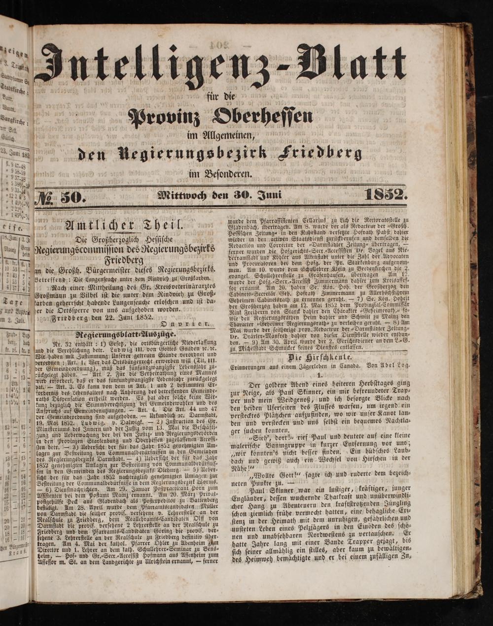 Friedberg den 22. Juni 1852.