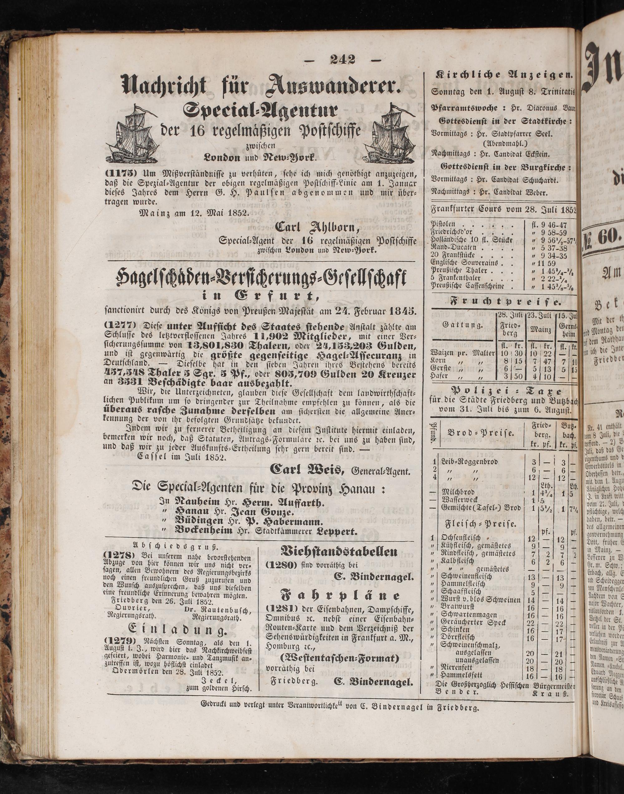 noch einen freundlichen Gruß zuzurufen und C. Bindernagel. den Wunſch auszuſprechen, daß uns dieſelben 5 2 15 e 5 bewahren mögten. FJ a h r p län e riedberg den 26. Juli 1852. 5.. Ouvrker, 25 Rautenbuſch,(1281) der Eiſenbahnen, Dampſchiffe, Regierungsrath. Regierungsrath. Omnibus ꝛc. nebſt einer Eiſenbahn— F 1 Routen⸗Karte und dem Verzeichniß der Si N ladu n g. Sehens würdigkeiten in Frankfurt a. M., 1279) Nächſten Sonntag, als den 1. Homburg de. Auguſt l. J., wird hier das Nachkirchweihfeſt 4 gefeiert, wobei Harmonie⸗ und Tanzmuſik an⸗(Weſtentaſchen⸗Format) zutreffen iſt, wozu höflichſt einladet vorräthig bei Qbermörlen den 28. Juli 1852. 5 2 Jeckel, Friedberg. E. Bindernagel.