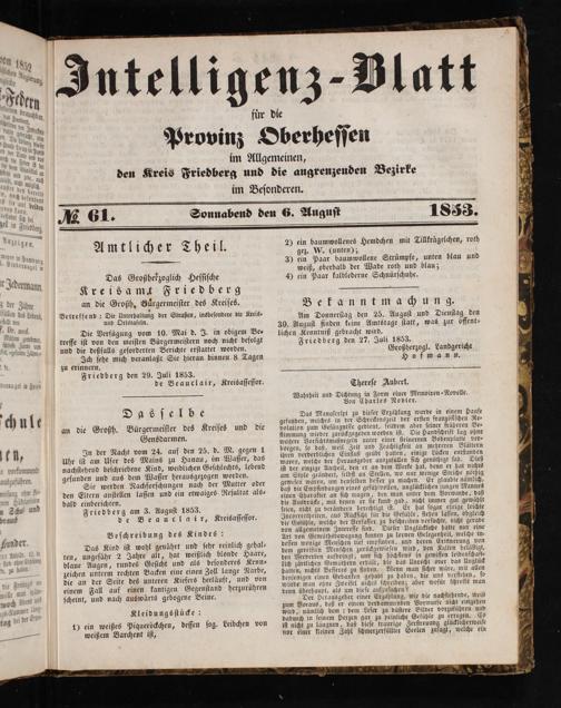 Friedberg am 3. Auguſt 1853.