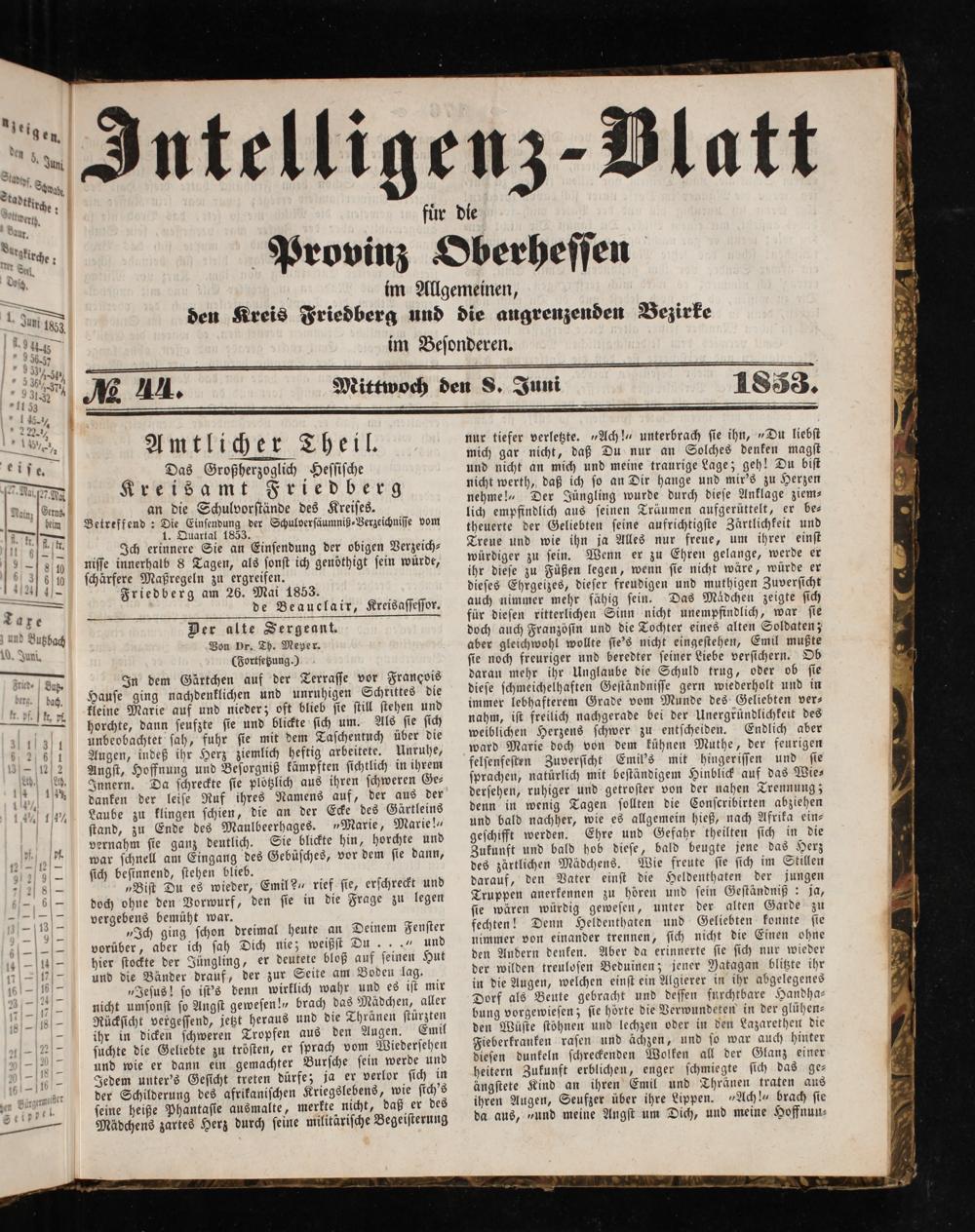 Friedberg am 26. Mai 1853. de Beauclair, Kreisaſſeſſor.