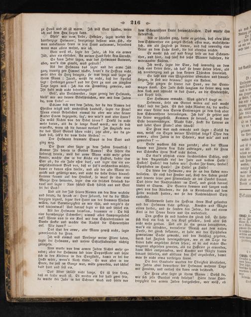 Geh', alte Betſchweſter, ſagte zornig der Hofmann, bleib' mir mit deinen Bibelſprüchen, wie mit dem Juden da, vom Leibe!—