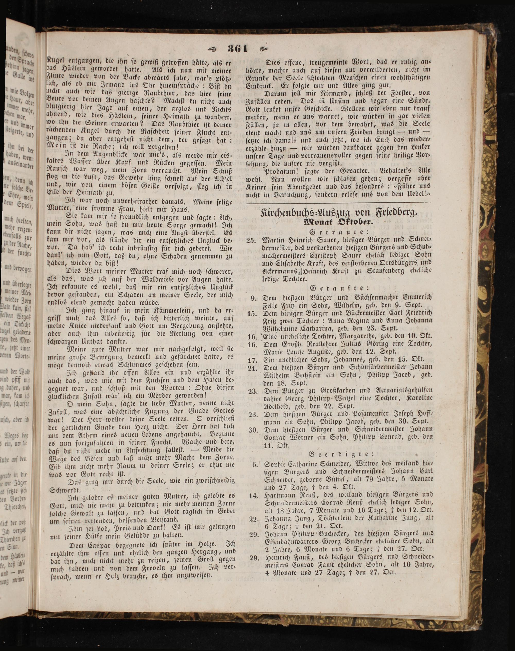 Kirchenbuchs-Auszug von Friedberg. Monat Oktober.