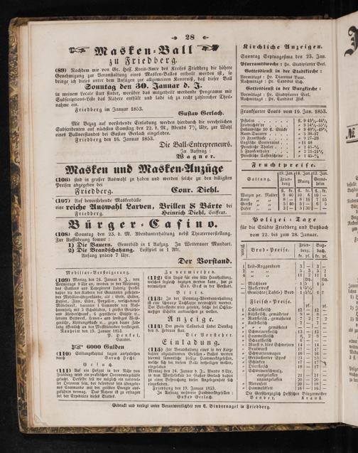 (89) Nachdem mir von Gr. Heſſ. Kreis-Amte des Kreiſes Friedberg die höhere beung zur Veranſtaltung eines Masken⸗Balles ertheilt worden iſt, ſo bringe ich dieſes unter dem Anfügen zur allgemeinen Kenntniß, daß dieſer Ball