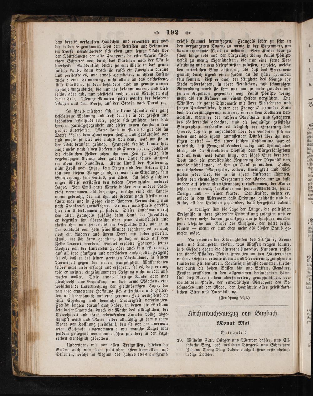 Kirchenbuchsauszug von Butzbach. Monat Mai.