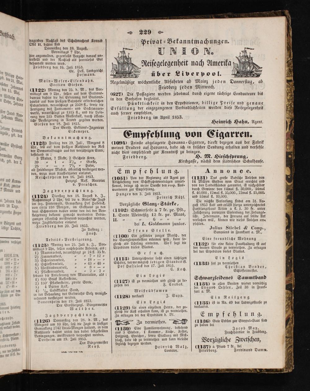 auch ferner empfehlen. Friedberg im April 1853.