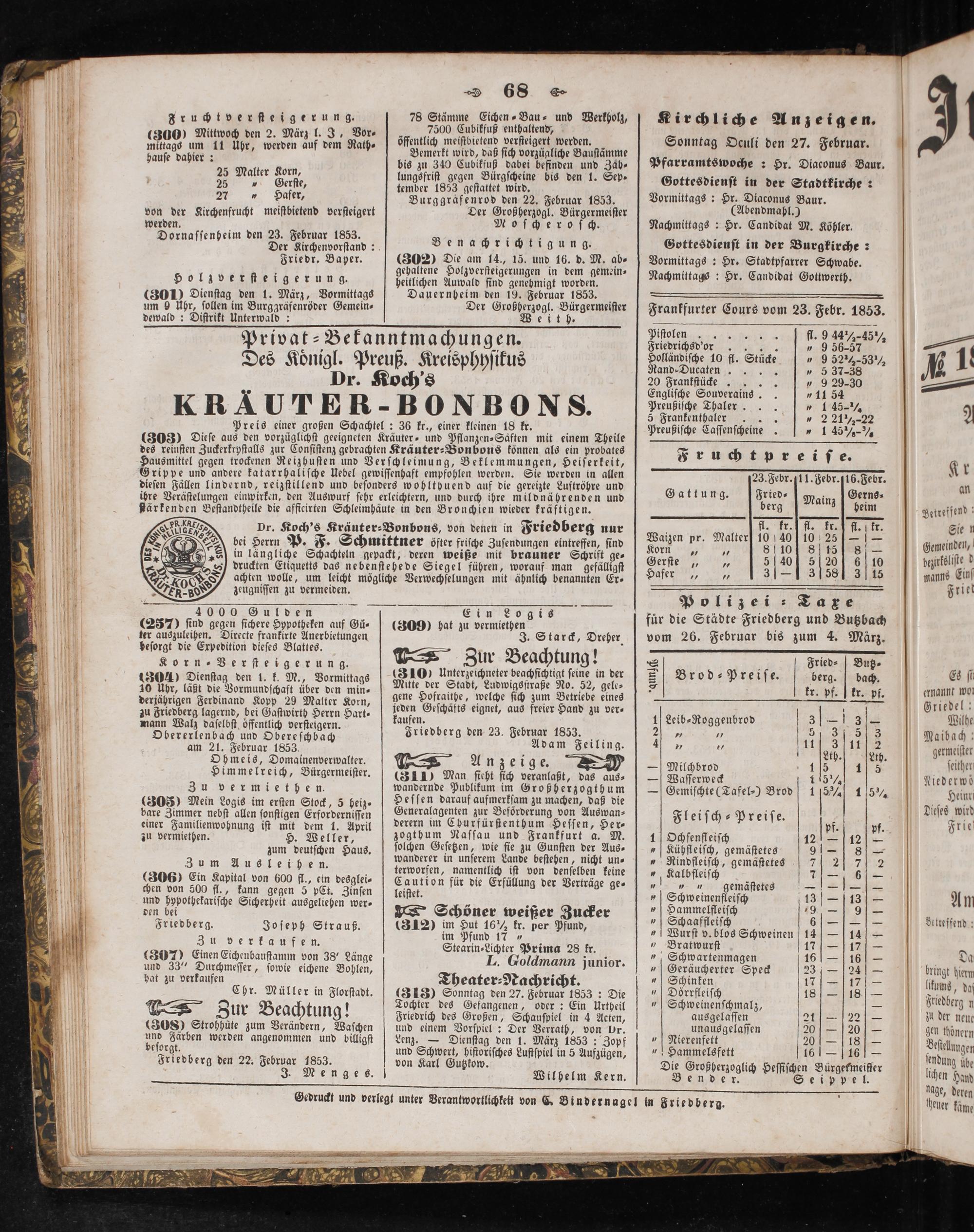 Gedruckt und verlegt unter Verantwortlichkett von C. Bindernagel in Friedberg. d