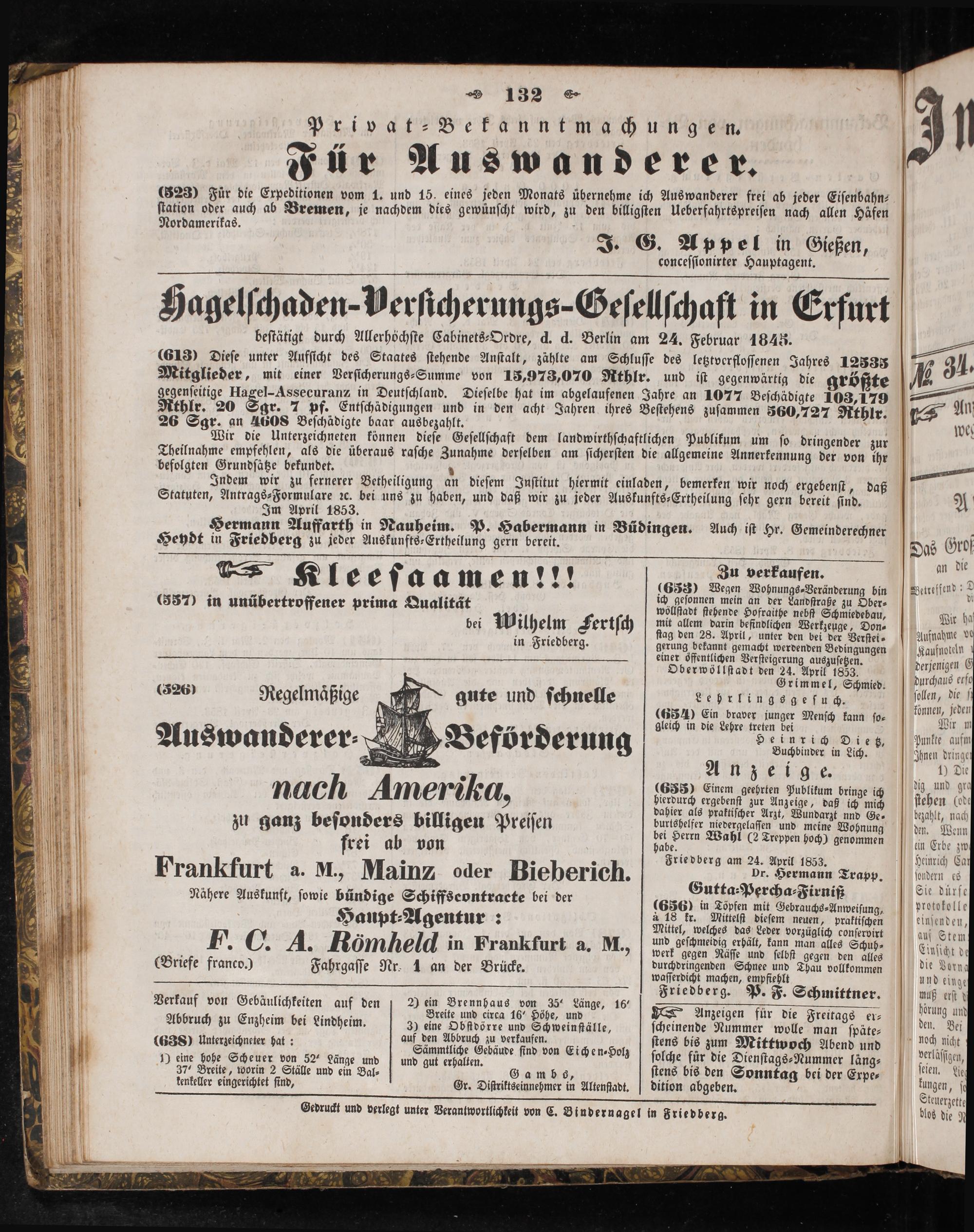 Gedruckt und verlegt unter Verantwortlichkeit von C. Bindernagel in Fried berg.