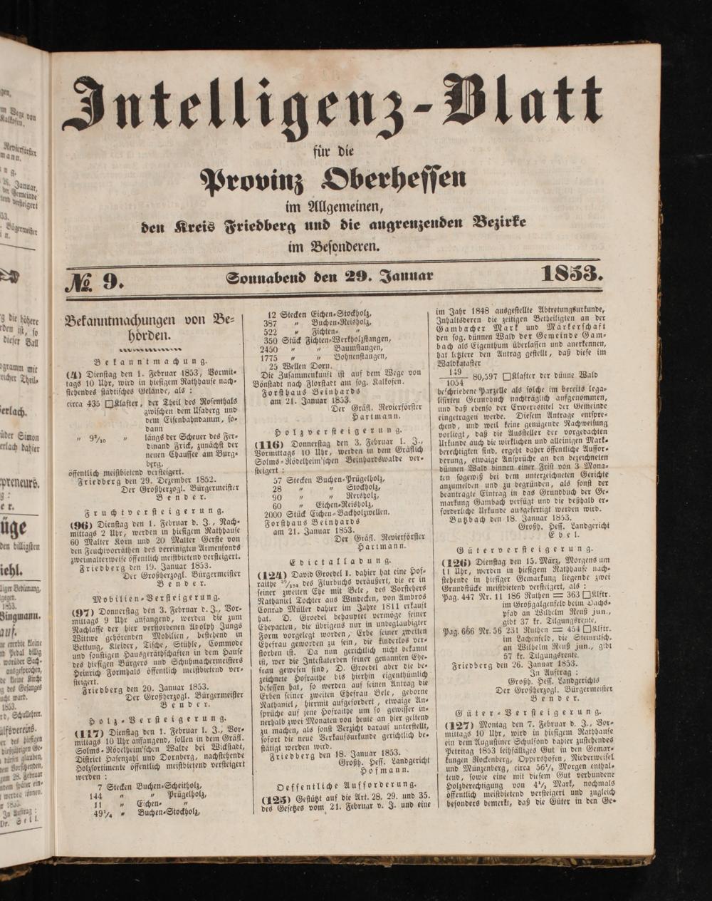 Friedberg den 26. Januar 1853. In Auftrag: Großh. Heſſ. Landgerichts Der Großherzogl. Bürgermeiſter Bde.