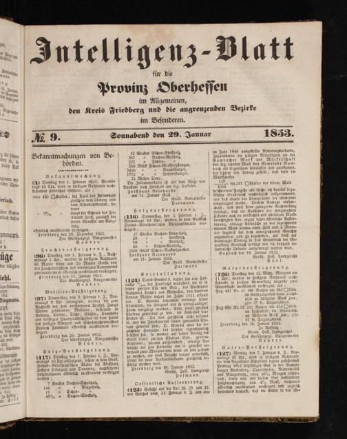 Friedberg den 19. Januar 1853. Der Großherzogl. Bürgermeiſter Bender.