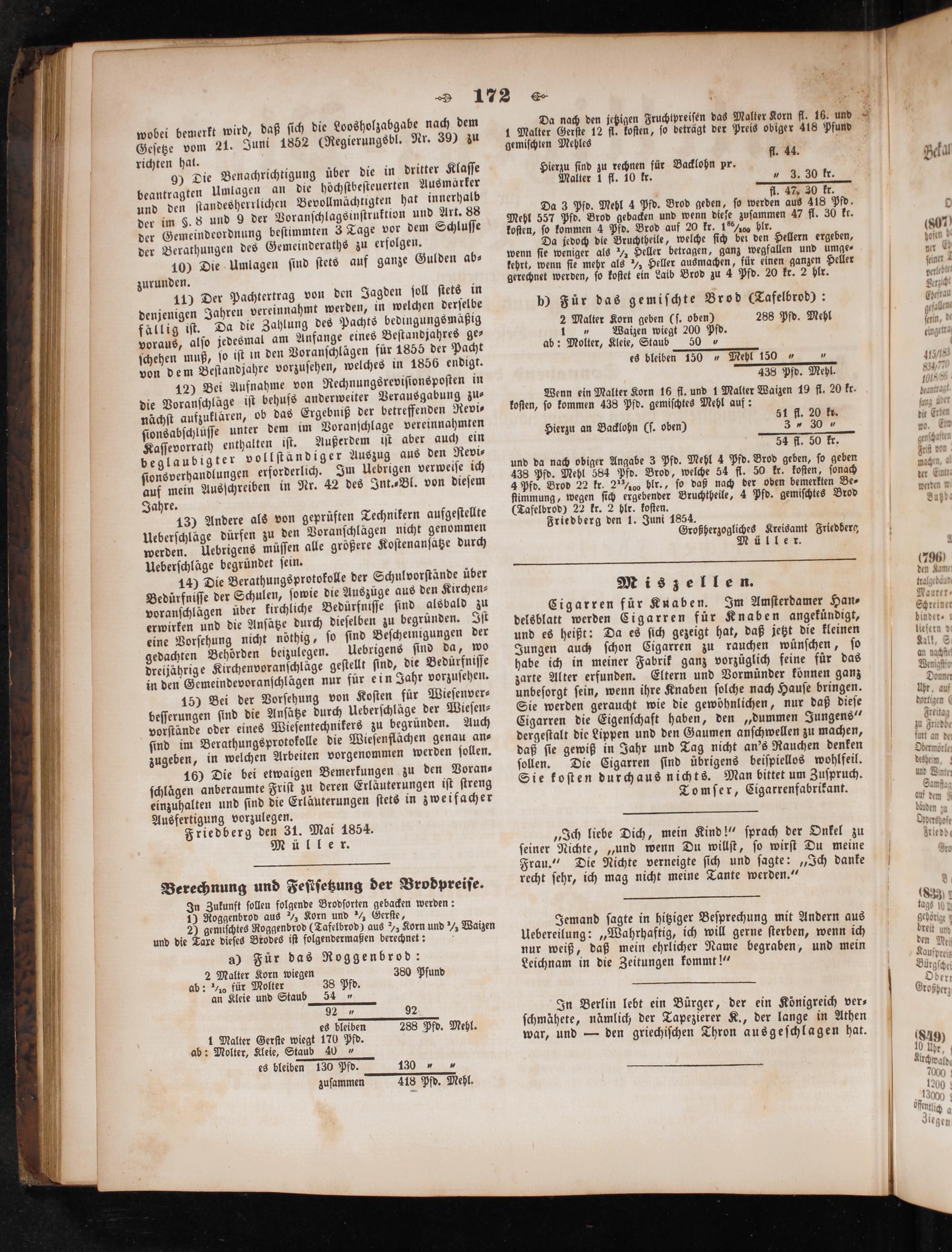 Ausfertigung vorzulegen. Friedberg den 31. Mai 1854. Müller.