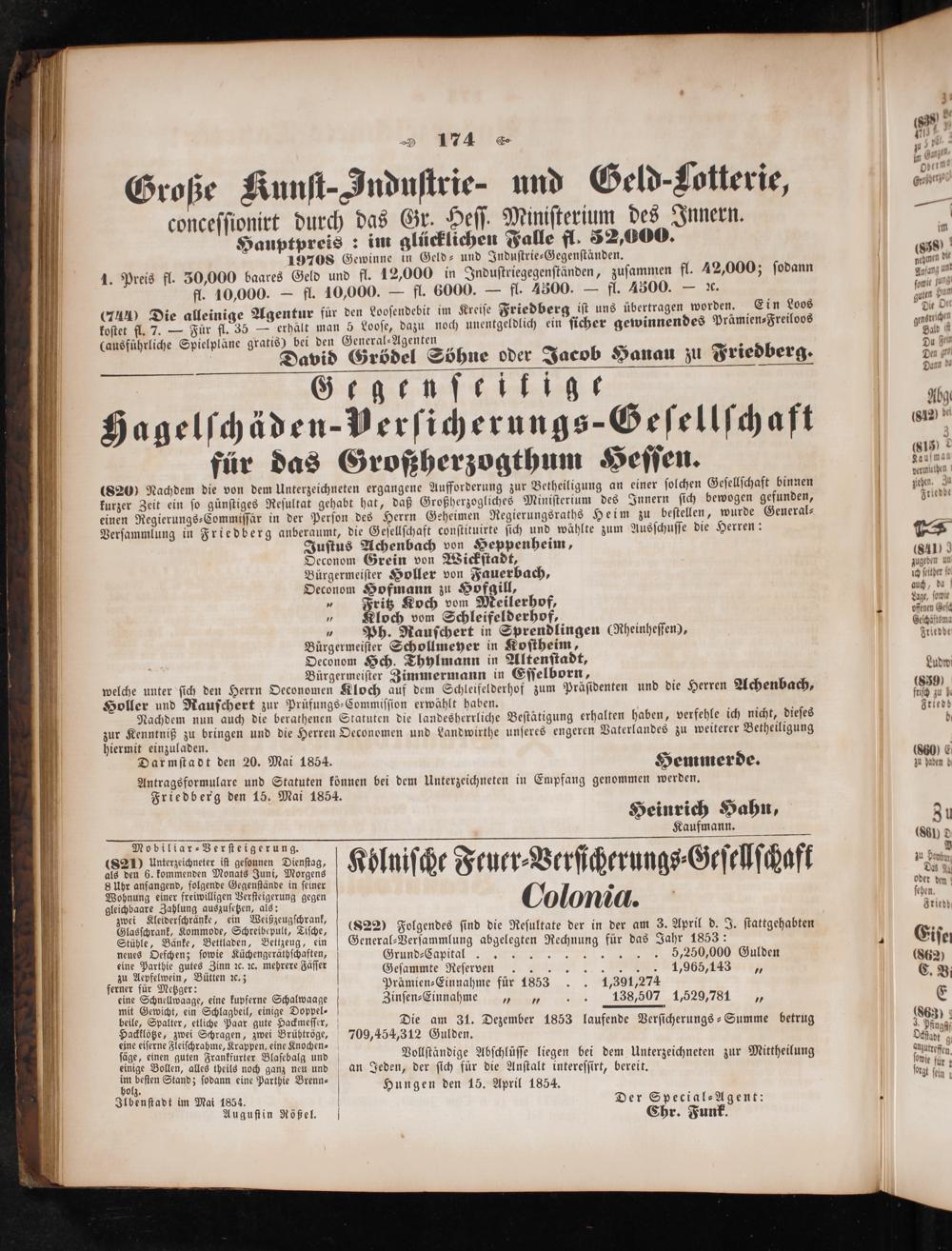 Friedberg den 15. Mai 1854. Heinrich Hahn, Kaufmann.
